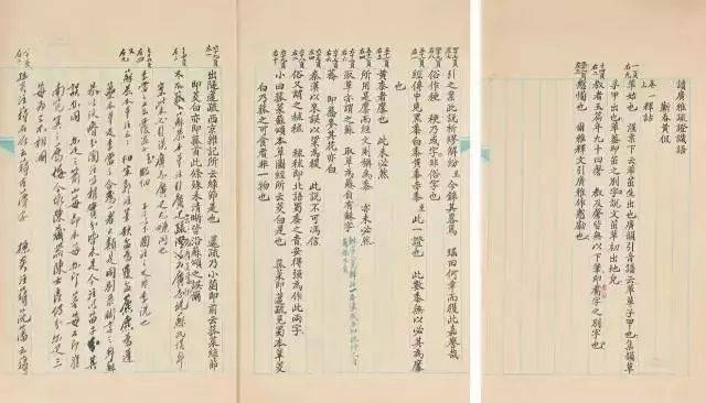 此件为黄侃先生课儿钞录古文,其首册用黄侃专用稿纸钞成,批校严谨,颇见先生认真态度。