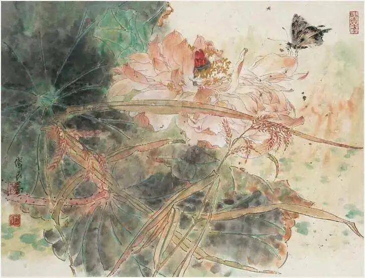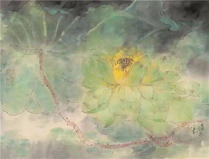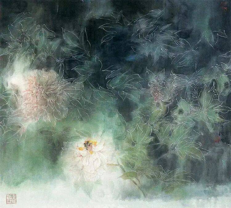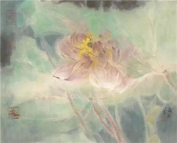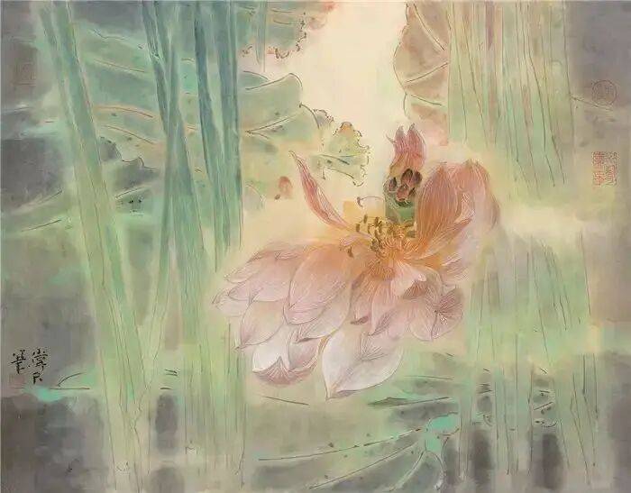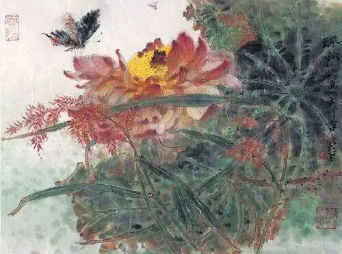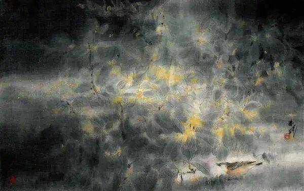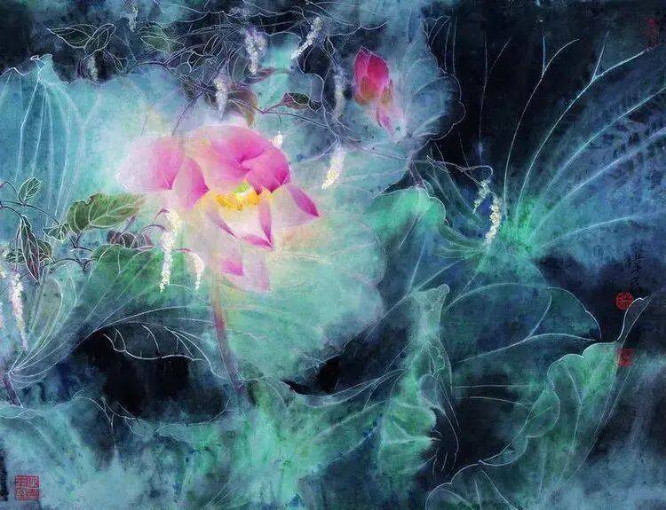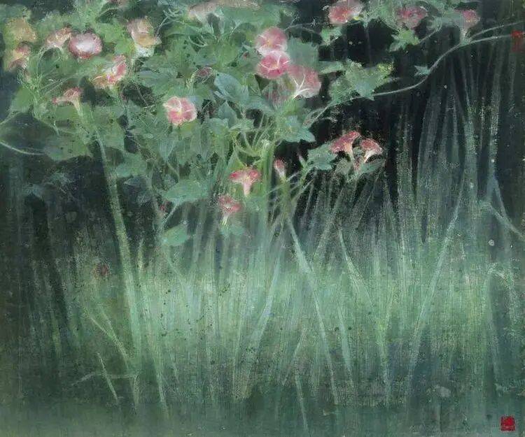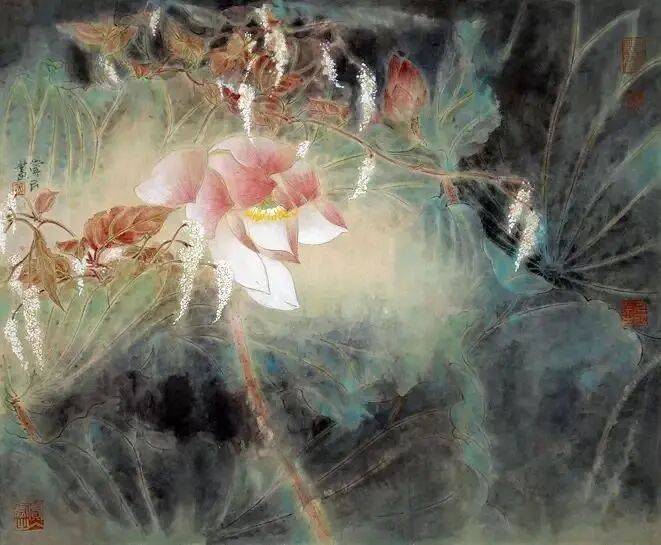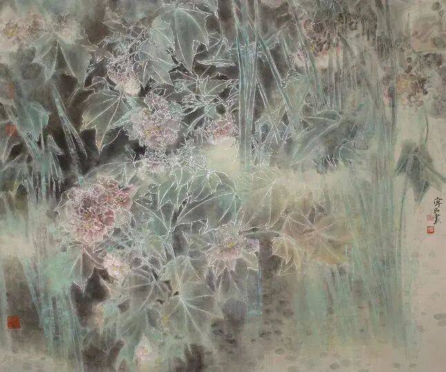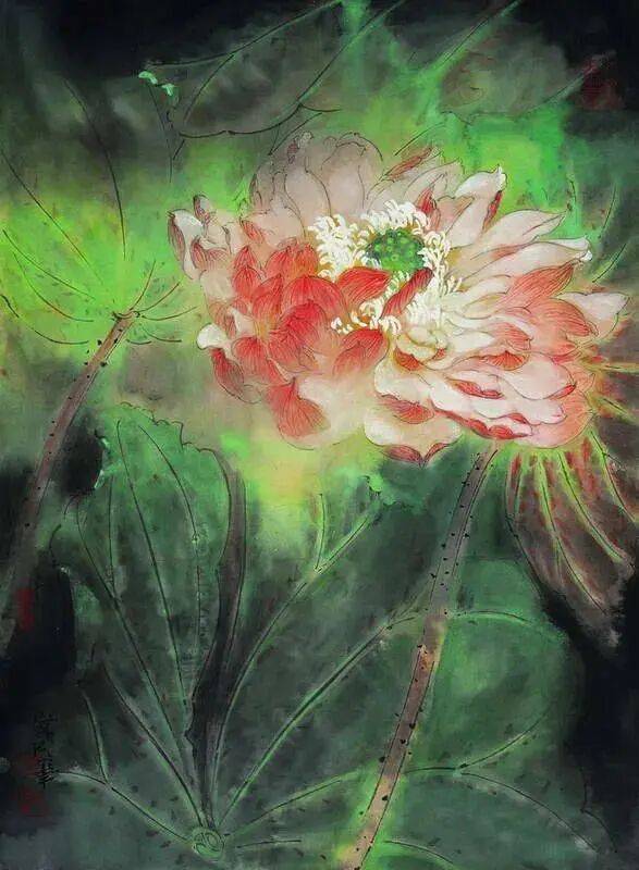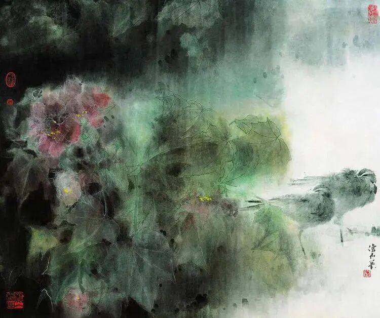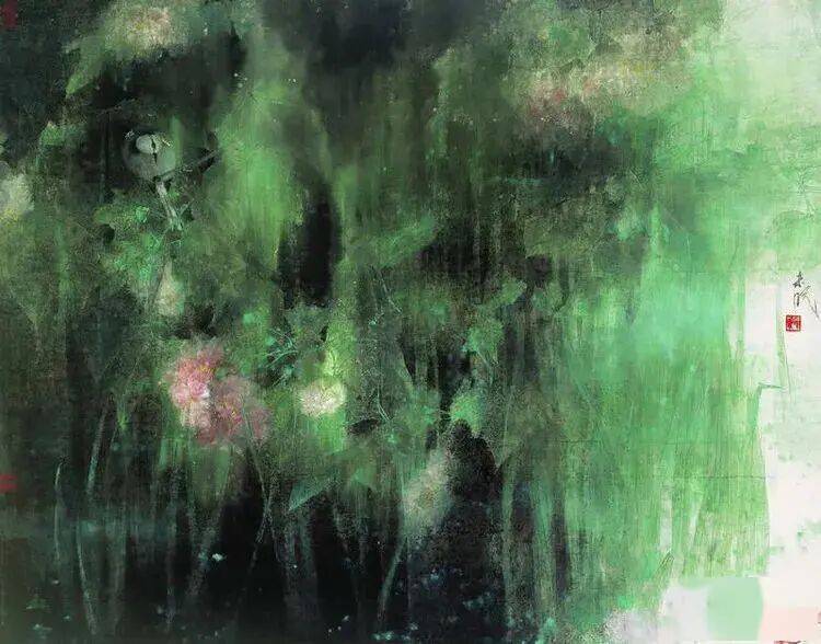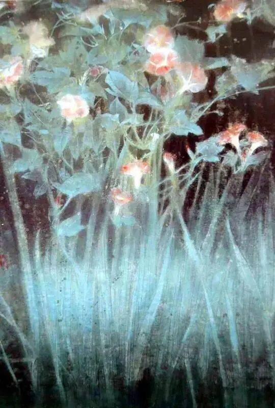 他不满足简单的花好月圆,一花一草也要传递出个性的精神神态,融工笔的勾勒、渲染与没骨、兼工带写、泼墨法为一体,悉心勾勒着万物的微末变化。区别于传统绘画的色彩原则,他以情为轴心,大胆尝试对比色和丰富色彩的调动,却能处理得毫不流俗,具有现代意识感的美学特征。