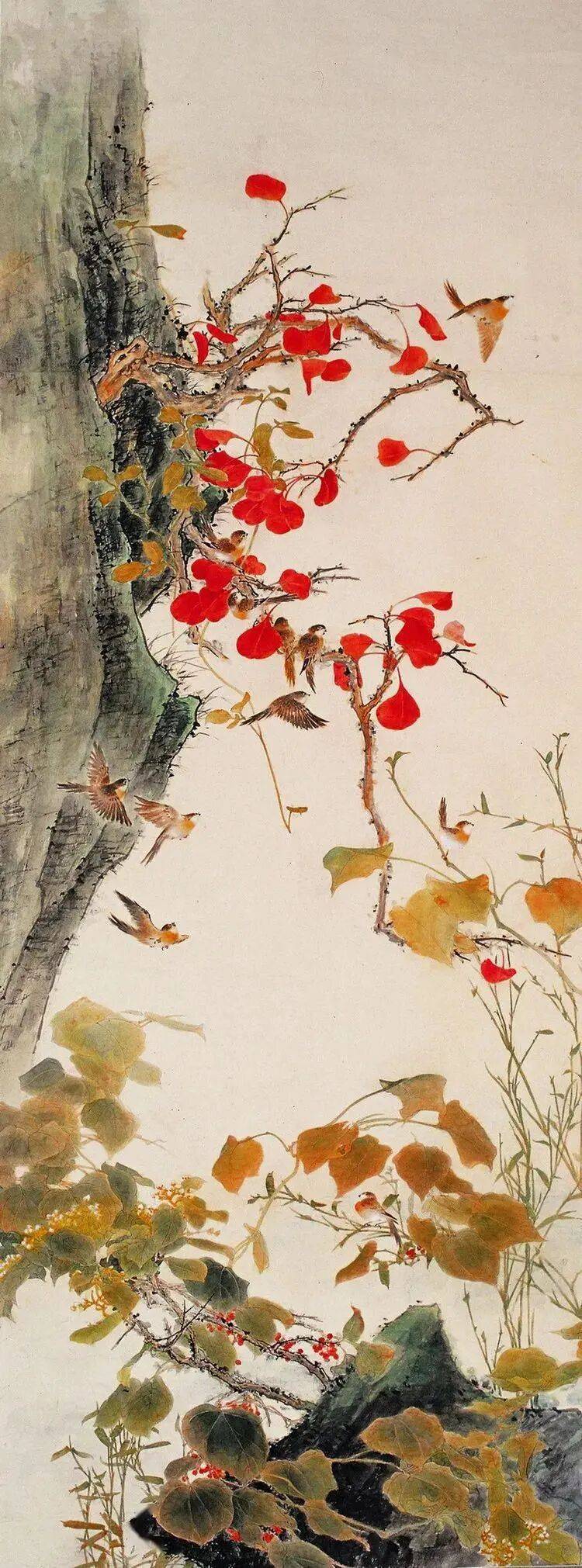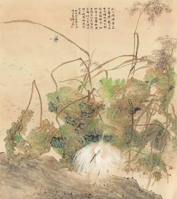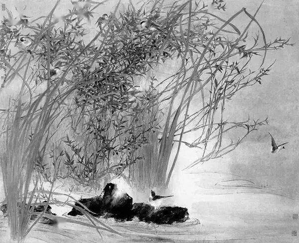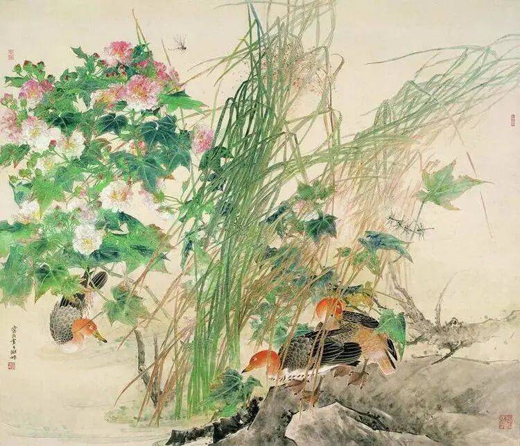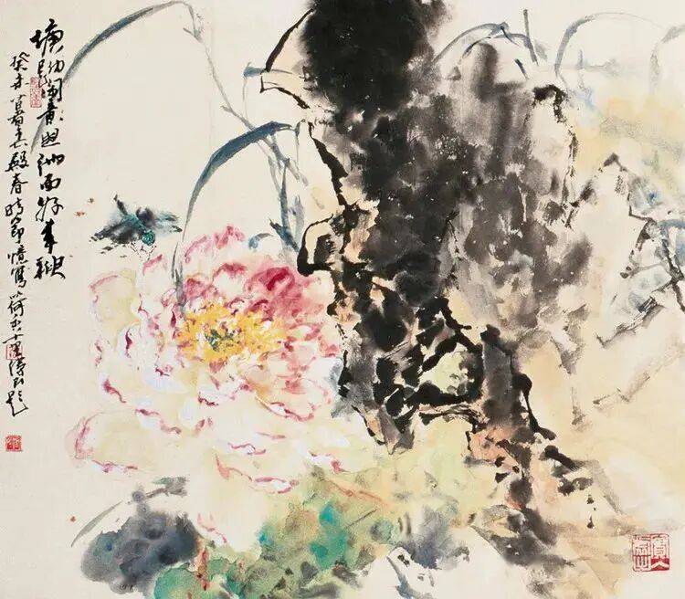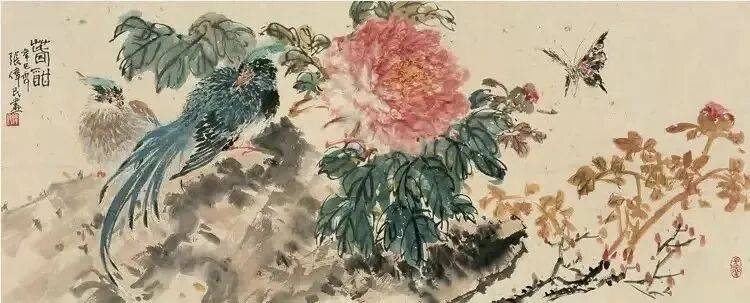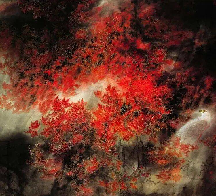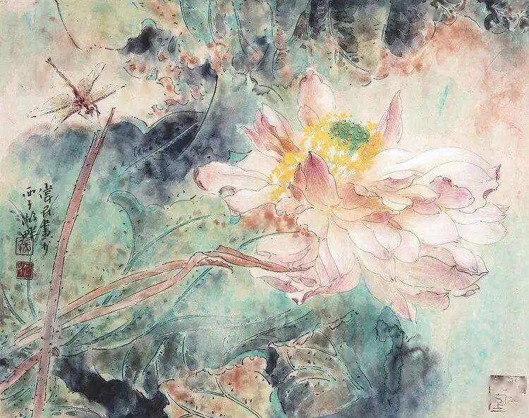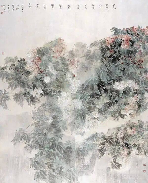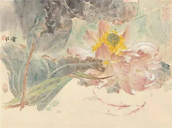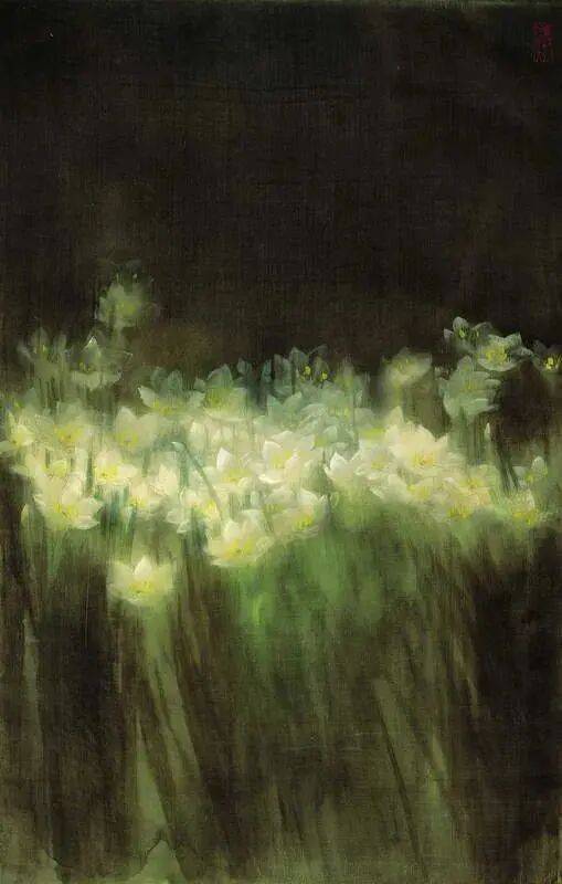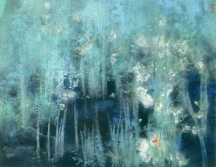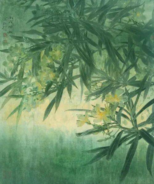 他不满足简单的花好月圆,一花一草也要传递出个性的精神神态,融工笔的勾勒、渲染与没骨、兼工带写、泼墨法为一体,悉心勾勒着万物的微末变化。区别于传统绘画的色彩原则,他以情为轴心,大胆尝试对比色和丰富色彩的调动,却能处理得毫不流俗,具有现代意识感的美学特征。
