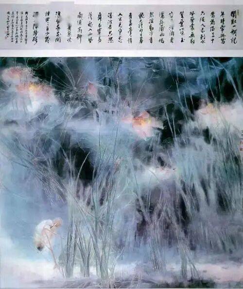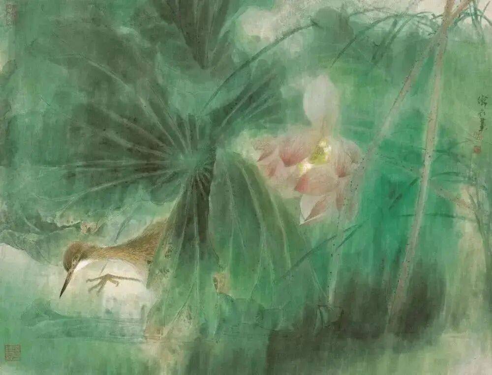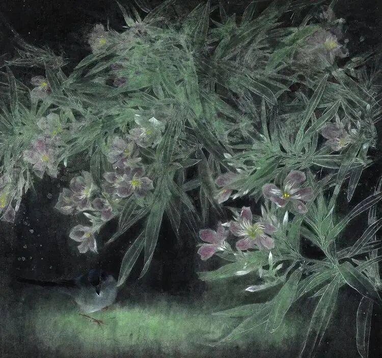 诗性工笔的创作,是他数十年不断探索的结果。唯美梦幻的意境谋划,实入虚出的绘画语言,工笔意写的“营造法式”,大块的墨色渲染,挺健的细笔勾勒等共同构成其作品的诗性。