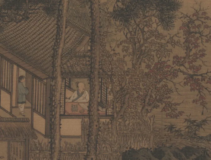 南宋 刘松年 秋窗读书图 局部