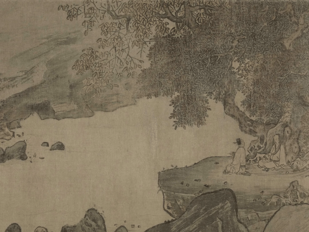 当然,也不是所有人都爱凑热闹的,这两位文人就另辟幽径,到秋林边看泉去了。