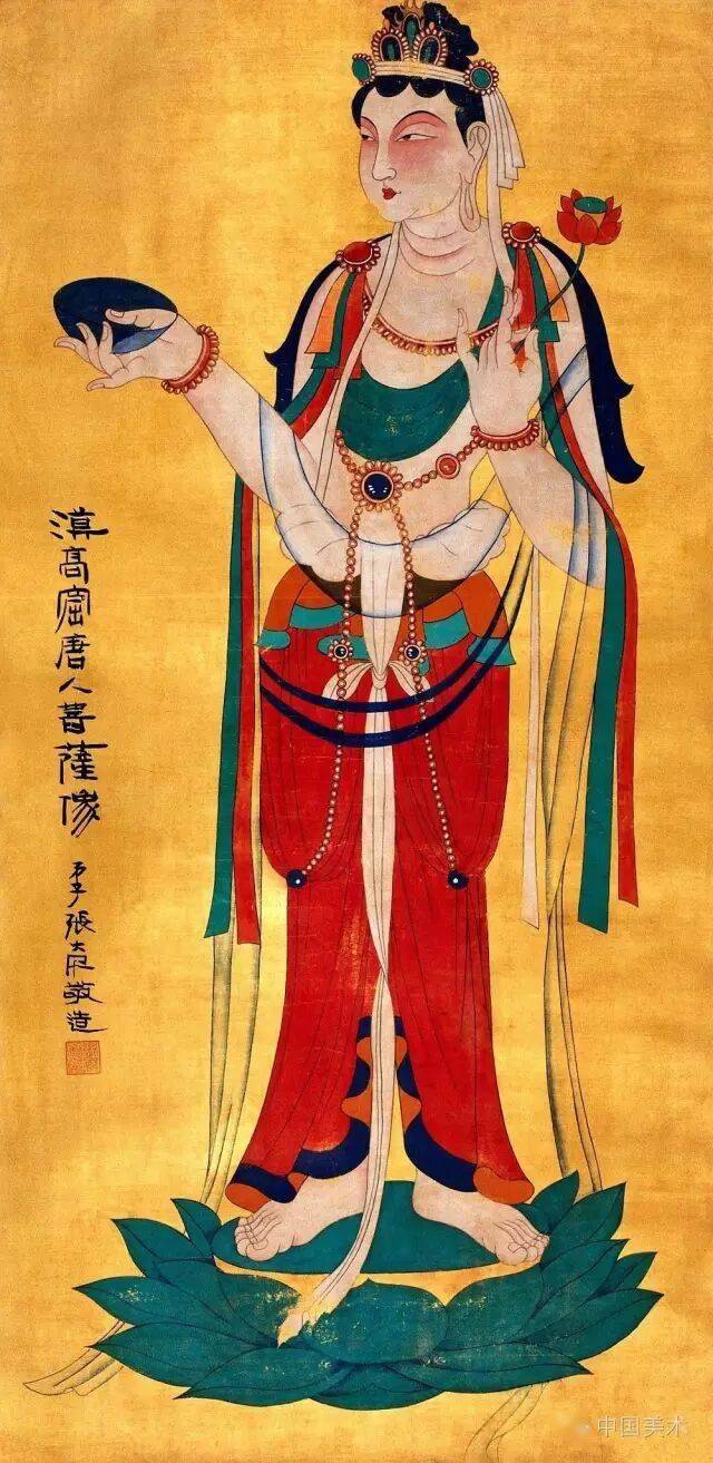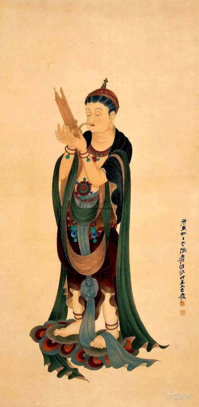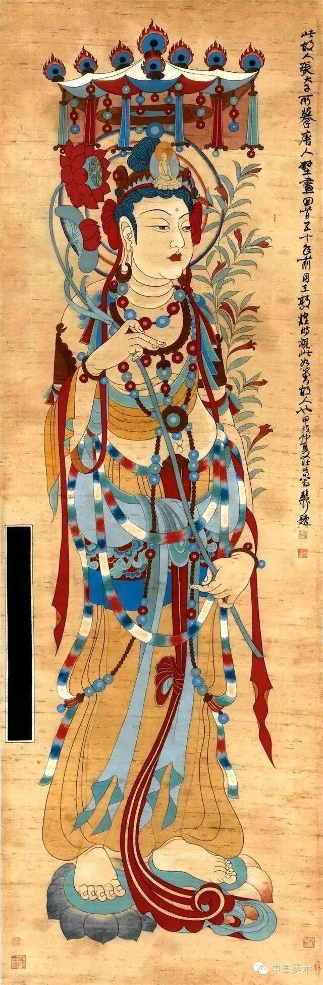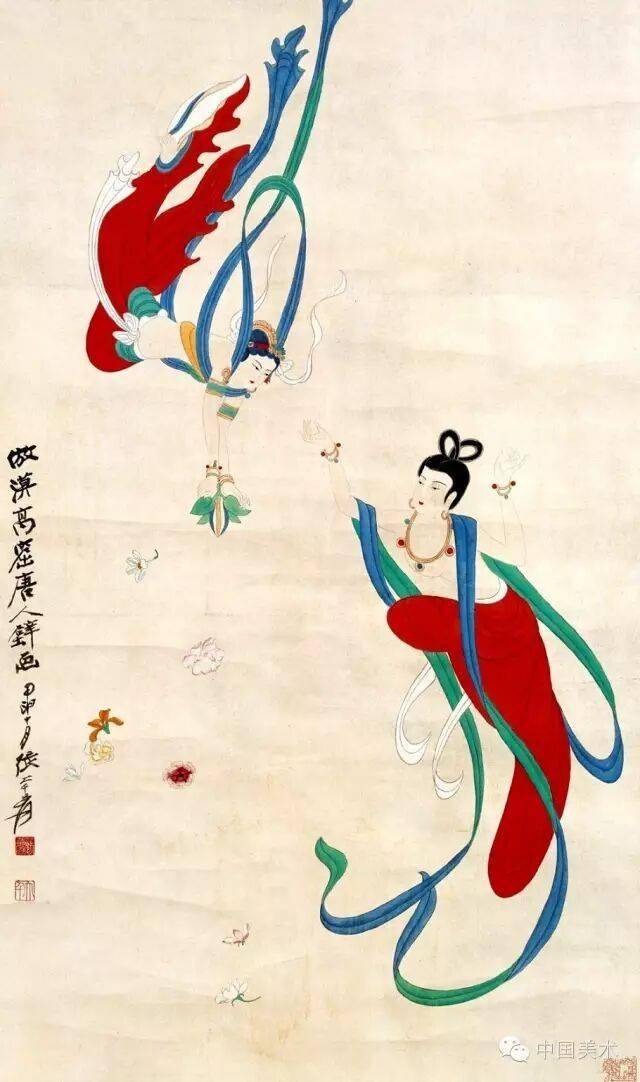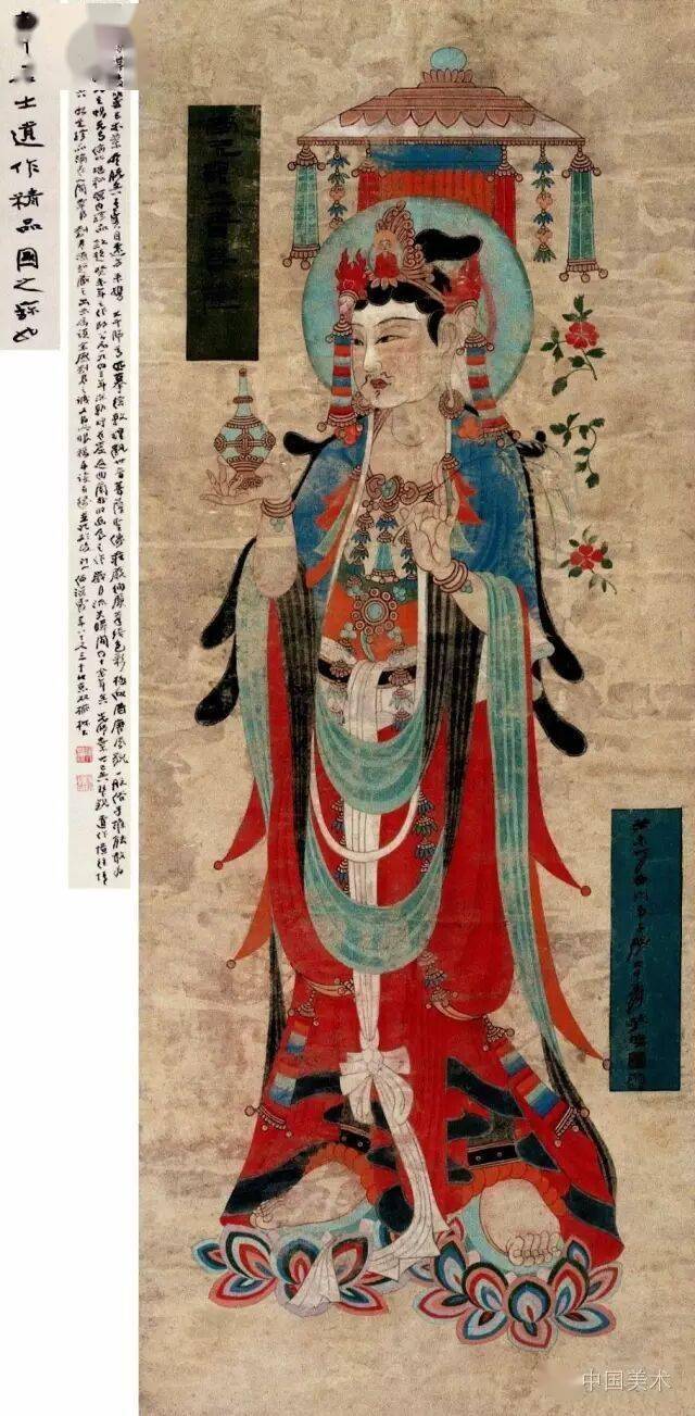 中国自有图画以来,在我前面所述,是先有人物画,次有佛像画。山水不过是一种陪衬人物的。到了后来,山水独立成宗,再加以有南宗水墨、北宋金碧的分别,而文人便以为南宗山水是画的正宗,连北宗也被摒斥在"画匠"之列,不只是将人物佛像花卉,看作别裁异派,甚至也认为是匠人画。自宋元到今天,这种见解,牢不可破,而画的领域,也越来越狭小。不知古代所谓大画家,如所说的"曹衣出水,吴带当风"这些话,都是指画人物而言;所谓"颊上添毫"、"画龙点睛"这些话,也都是指人物画。到后来,曹、吴之作不可见,而一般画人物的,又苦于没有学问,不敢和山水画争衡,所以一天一天地衰落下去。到了敦煌佛像人像被发现之后,这一下子才知道古人所注意的,最初还是人物而不是山水,况且又是六代三唐名家高手的作品,这一下子才把人像画的地位提高,将人物画的本来价值恢复。因为眼前摆下了许多名迹,这才使人们的耳目视听为之一新,才不敢轻诋人物画,至少使人物画的地位,和山水画并峙画坛。