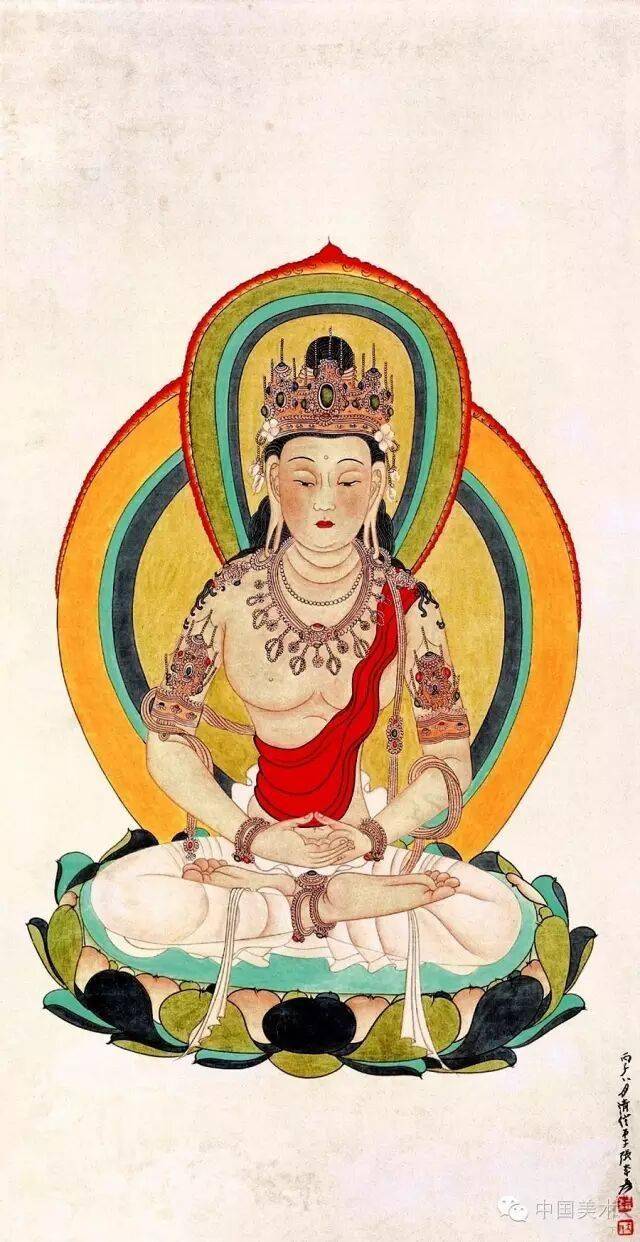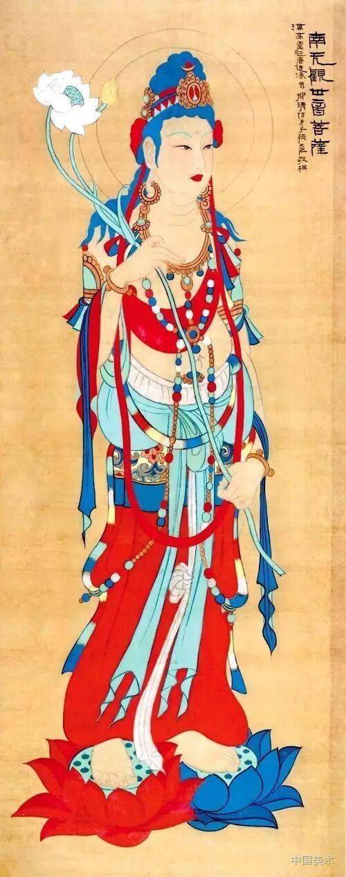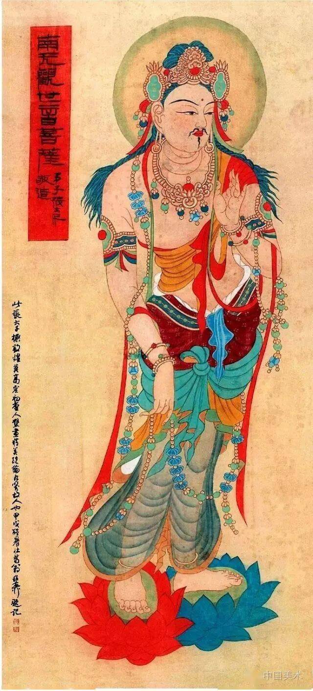 我国因后来山水画的盛行,画人物画佛像画都衰落下去,差不多沦于工匠手中,就是能够以画佛名家的,也不过画达摩式的佛像、女相的观世菩萨而已。至于天释是个什么样子,飞天和夜叉这两个名词虽然流传人口,到底又是何种样子,可以说是全不知道。画坛衰落到这个地步,真是令人气短!但在敦煌壁画发现以后,这才给我们以佛、菩萨及各种飞天、夜叉的真像,我们才晓得观世音菩萨在古代的男像,是有胡须的,不只是后来画一绝美女人,便指以为是观世音菩萨。本来,菩萨男、女相本没有什么可以争执的,因为《普门口》上曾说过,凡是世人应该用什么形态得"度"的,观世音菩萨便现何种形态给他讲说佛法,有时现丈夫身,有时现女人身,有时现宰官身。这就是说,对于某界人要叫他信佛法,必定要现出那一界人的形态、服饰及语言等等,要一切相像,才能接近他们。如果现丈夫身而为女人们说法,那女人们不会被骇跑了么?这也像后来外国人要到中国传教,必定学中国方言,说得纯熟,然后再穿长袍马褂,这才可以和中国非知识分子接近,这才可以布道一样,是一个道理。我因谈自敦煌佛画而得到各种佛、菩萨像的精确性,不觉扯了一大堆的话,然而这道理是真实的啊!