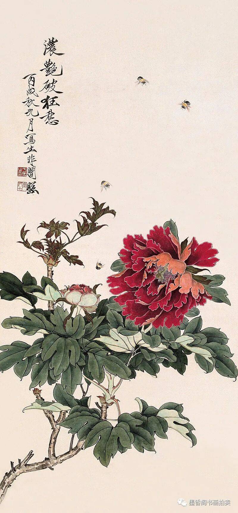 疏密是处理画面关系时必须遵守的一项重要法则,“疏可走马,密不透风”说明画面疏密要得当,要疏而不空、密而不乱。在花鸟画中,花、叶、枝、鸟、虫的摆放都要有疏密变化,不可平均摆放。平均、等量、平行是画之大忌。