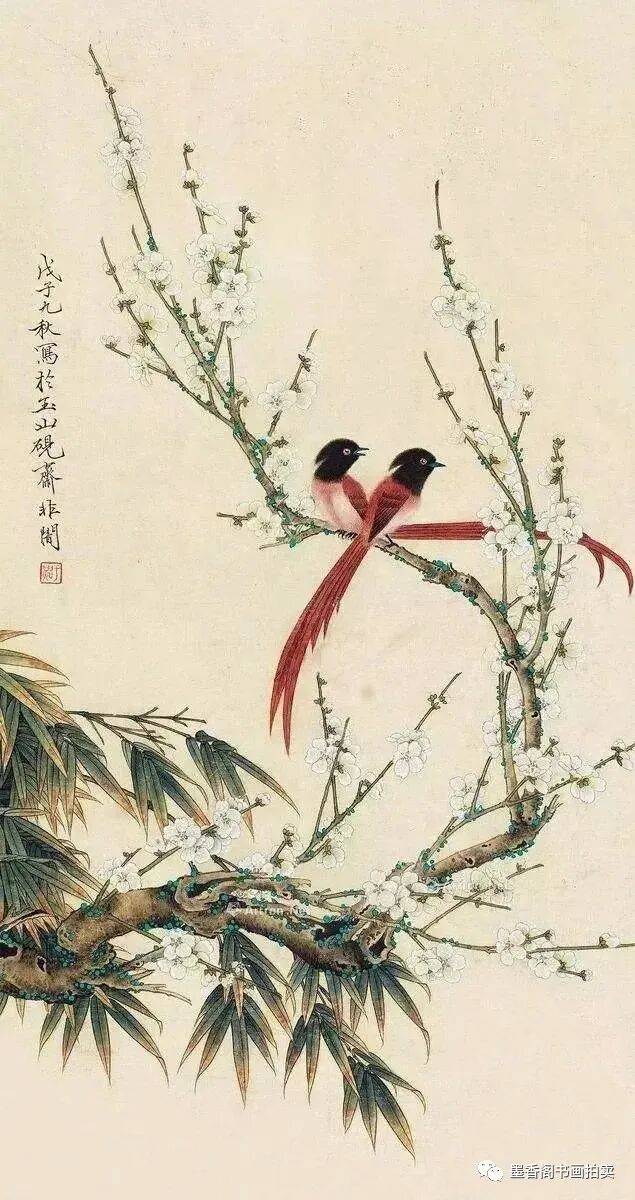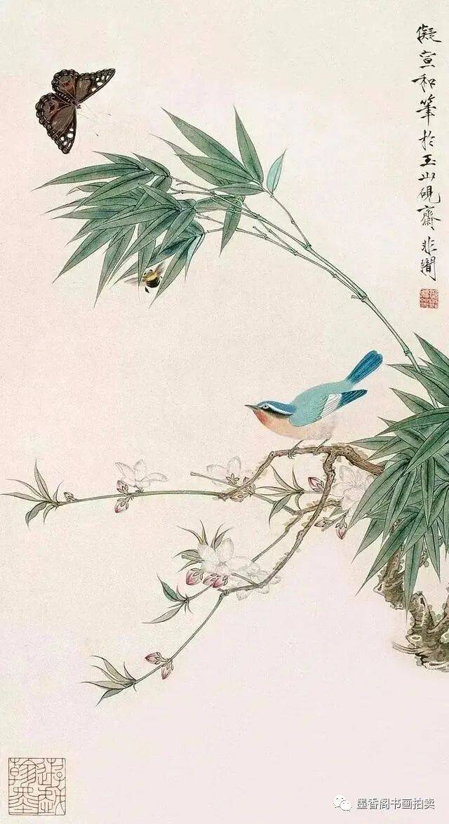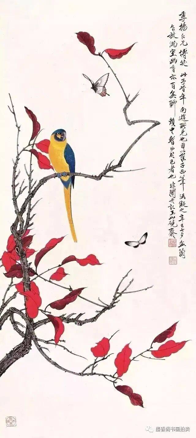 在花鸟画中也有开合关系,开、合主要指画走势的顺、逆、迂、回。顺为开,逆为合,迂为开,回为合。