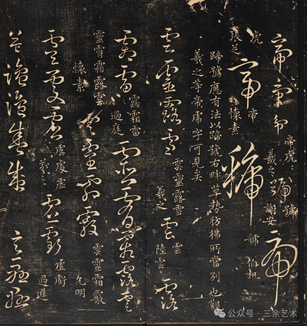 对于学习草书的朋友而言,这部“神帖”不仅能够解决“草法”的临摹跟识读,同时其选字皆是历代名家之范字,格调高古,气息醇厚,长久临摹便可迹近古人之境。