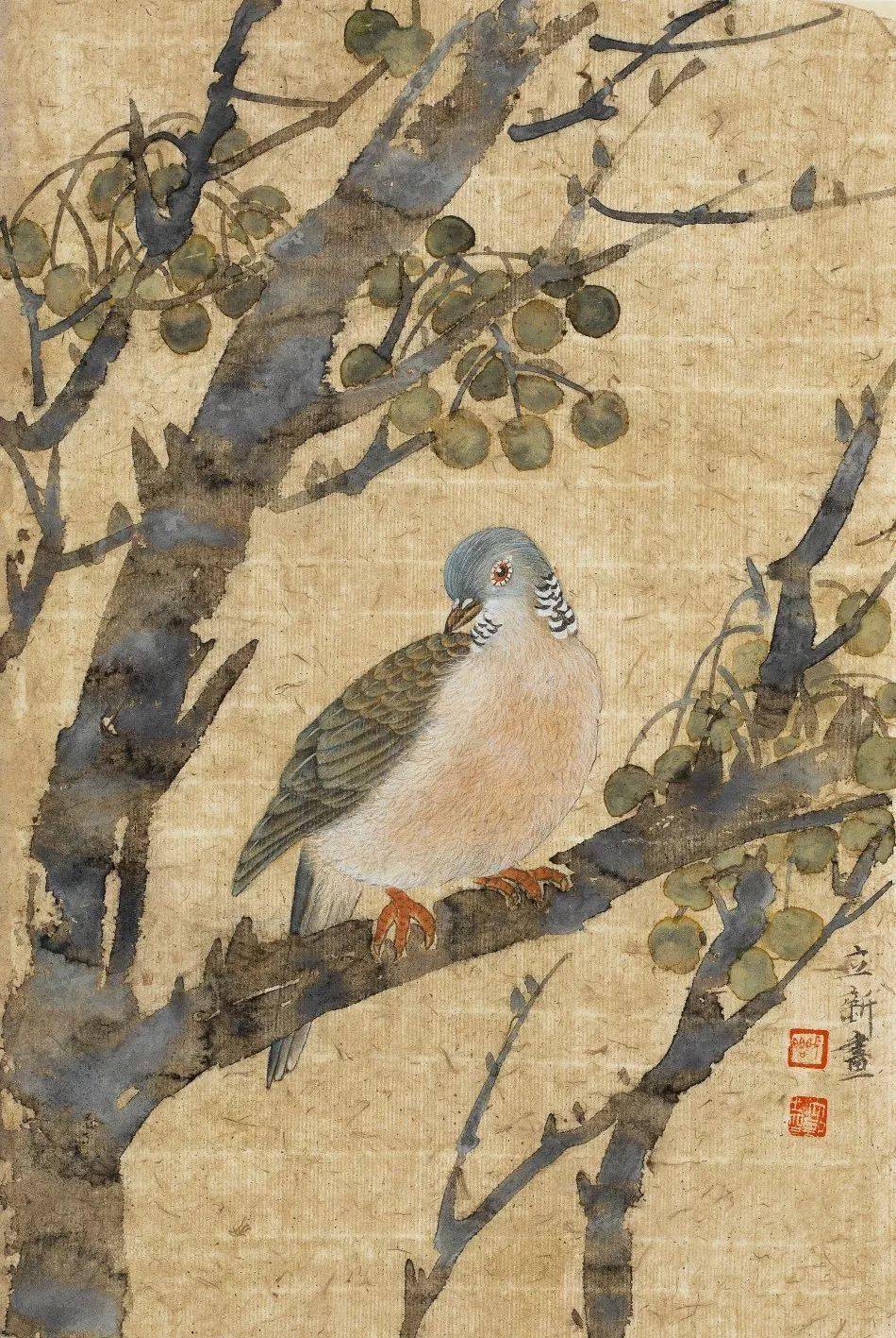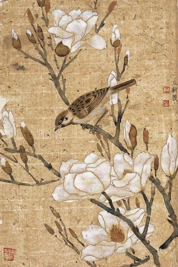 观徐立新的花鸟画,始生古朴肃然,凝重端庄之感。恰如身临其境,顿觉心胸豁然开朗,有流连忘返之意趣。真乃一个:“花木催人老,一鸟一世界。清风已归去,斯人伴明月”的童话世界。