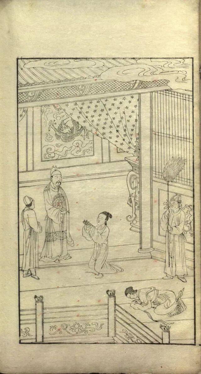 到了明朝后期,雕印版画已经成为一种专门艺术了。明代各地书肆所刻印的佛经、戏曲、小说和一些通俗书籍,大都附有版刻插图。