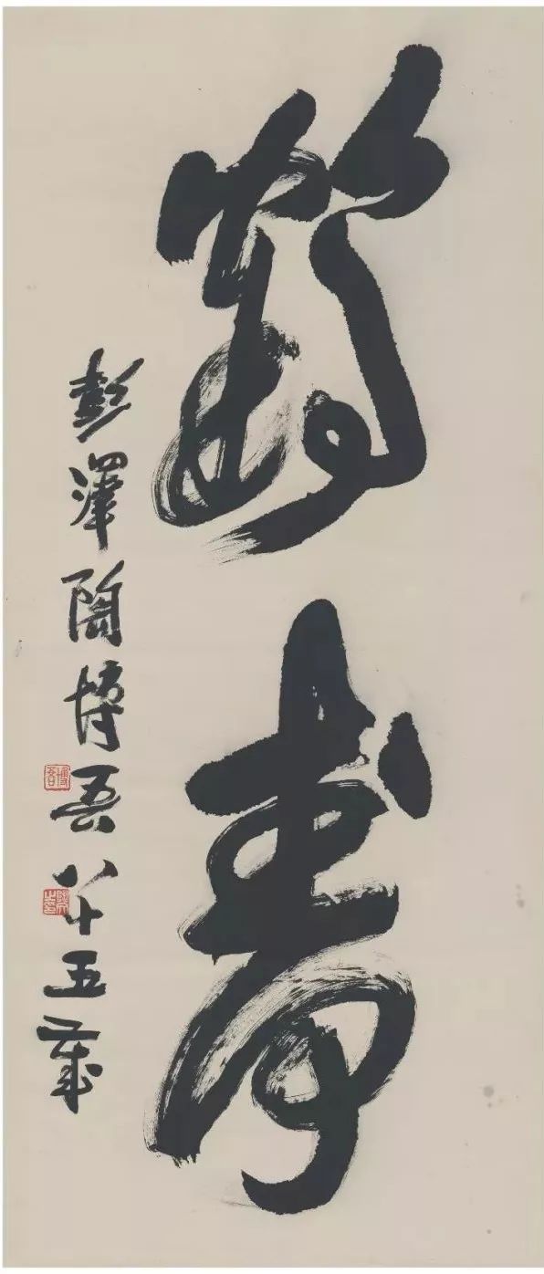 陶博吾的书法最初显然是追随吴昌硕的,他也终其一生写《石鼓文》。不过与吴氏众多追随者不同的是,陶博吾能师其心而不蹈袭其辙迹。那么吴昌硕的艺术之心又是什么呢?——是写,是写意!吴昌硕一生浸淫于《石鼓》,自谓“一日有一日之境界”。他是用一种不被蒙翳的艺术心眼,去发现、去创造、去表现、去直抒胸臆,去“写”。此一“写”字把文人胸中的郁勃之气、士气、逸气酣畅淋漓地倾泻了出来,把生命的节奏、心灵的节奏,不假雕饰地歌唱出来——笔歌墨舞。这一点是决绝于以往一切写篆描手画脚、脂粉俗工的所在。所不同的是陶博吾把吴昌硕苍郁古厚的篆法推向了写意的极端境地,书写更加自由酣畅。为了节奏气势的抒扬,他已不再随体诘屈,竟把许多曲折盘旋的笔致大大地加以简化,已经是用行草书的风神来改造篆书了。
