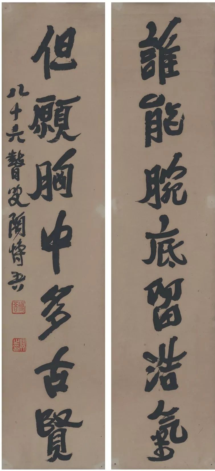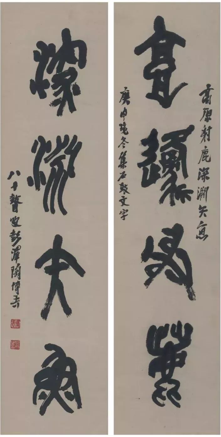 ▲“高原射鹿,深渊矢鱼”篆书对联