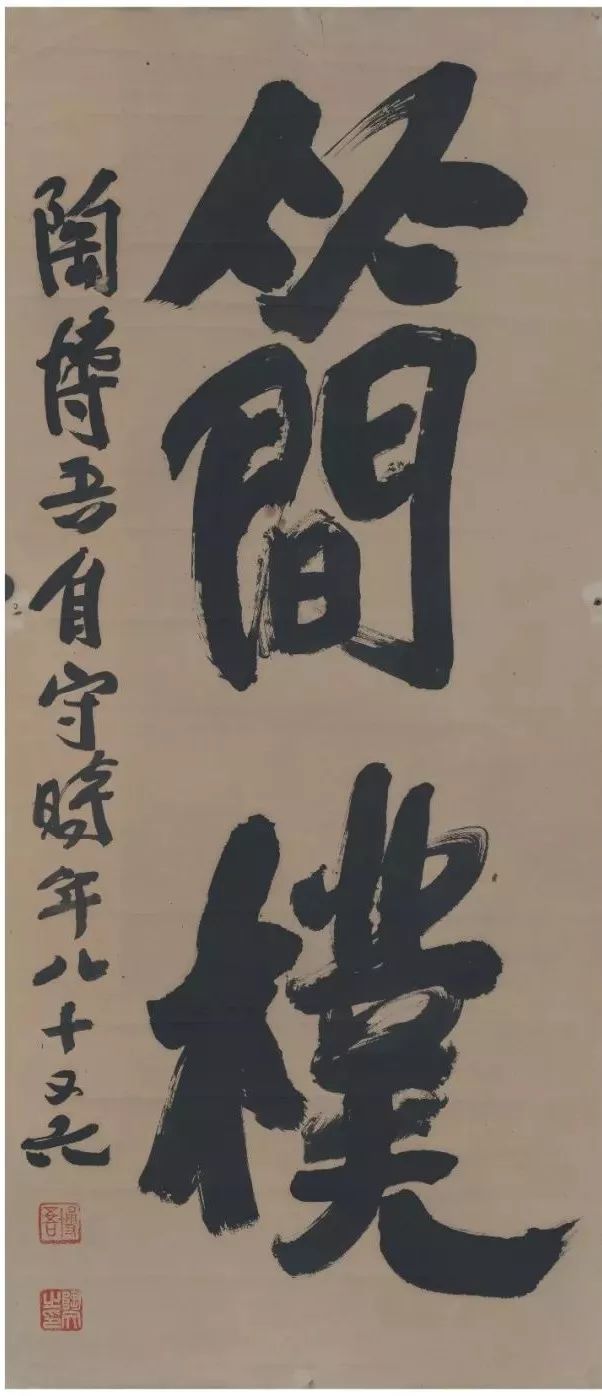 陶博吾在笔意上对于吴昌硕《石鼓》的发展自然也带来结构与体势上的显著变化,其实书法的结构、体势和用笔本是互为表里,体用不二的。陶博吾带有行草风神的篆书,打破了《石鼓文》原来的匀称娴雅,一变而为奇崛峭拔。为了书写节奏和气势的表现需要,他的篆书,有的地方改变了习惯的书写笔顺,有一些半包围的结构作了很大的屈伸消长的调整,一变而为排叠的结构了,如“深”“渊”等字,这一点颇合乎先秦隶书经潦草化而解散篆书的演进规律。更有甚者,他没有拘泥于六书,在某些偏旁的笔势连接上以意为之,改变了原来篆法的连接方式,因此带来了十分新鲜而生动的空间感觉。这种种变化都是冒天下大不韪的叛逆行为,他不怕冬烘乡愿之辈的诟病,胆敢独造。这种胆略,正是一个伟大的艺术家不可或缺的。如果说他早期学习吴昌硕或者说透过吴昌硕学习古篆,还明显有着与古为徒、意与古会的努力,那么他的晚年,或者他最终的目标就成了把《石鼓》作为一种凭借。通过这一凭借,来完成他艺术人格的修炼:天真、倔强、生拙、深厚、朴野……这是他的人的品格,也是他的艺术的风格!陶博吾先生的艺术和人生是如此地真实,表里俱澄澈!