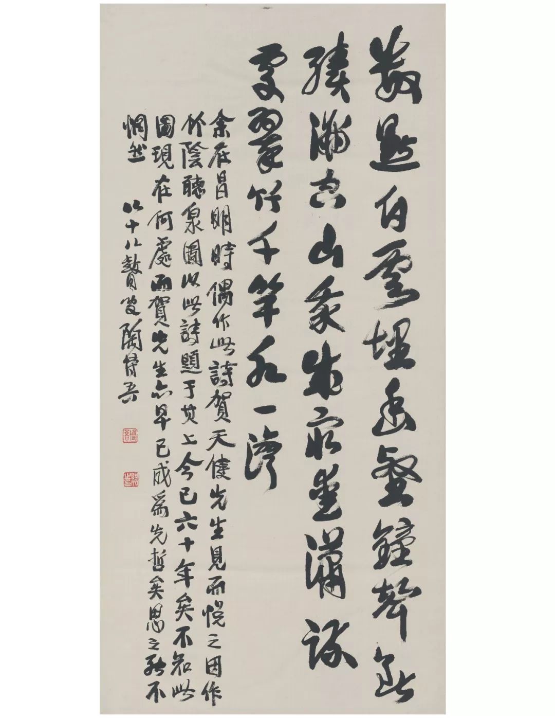 书法在陶博吾先生诸艺中无疑是最突出的,这不仅是因为陶先生书法修炼成的那种独特而高迈的个人风格,还在于书法也是他诸艺之根基,所以我们不能不先述其书法。陶博吾先生的青少年时代正处在西学东渐的历史时期,但他基本上接受的还是中国传统文化的教育。书法是他那一代旧式知识分子必修的学问,但他终其一生痴迷、沉醉其间,辄又是另一种内心自省的艺术追求使然。世人尽知其大器晚成的一面,其实陶先生天分极高,又何尝不是英才早发呢?他初弄翰事即表现出了颖异超群的艺术天赋,青年时代书名就广播乡里。二十五岁时,他考入了南京美专,师从沈溪桥、谢公展、梁公约诸前辈,开始了他专业的艺术道路。不幸因战乱而中途辍学。一九二九年他重整旗鼓,考入了上海昌明艺专,得以与潘天寿、王一亭、黄宾虹诸先生相周旋。在昌明艺专,于书他全面完整地把握了吴昌硕先生的艺术精神;于人应该说黄宾虹先生的思想对他产生了深远的影响。两年后陶博吾以优异成绩毕业于昌明艺专,却毅然放弃了在上海的发展,追随他先人陶渊明的足迹回到了彭泽老家。黄宾虹提出“官学”与“民学”的划分,“官学”就是御用,而“民学”才是保持士子独立品性的保证。在当时的上海毕竟商业气氛太浓了,以至于很多有才气的画家为了迎合时尚和商家口味,想变而不能。陶博吾一定是看透了这一点 ——“官学”之外,复有“商学”。因此他选择“民学”的归隐之路正是心灵不甘为奴的清醒抉择。对于艺术家来说,还有什么能比心灵的自由不泯更重要呢?陶博吾在他的而立年华就悟到了这一从艺之终极要害,他以后的大成也就是自然而然的事了。他的天分、他的彻悟以及天假以年,这些都应是上天的恩赐。世人皆叹其一生无尽的苦难与不幸,我则曰,幸哉彭泽瞽叟,“文章憎命达”真不我欺也!
