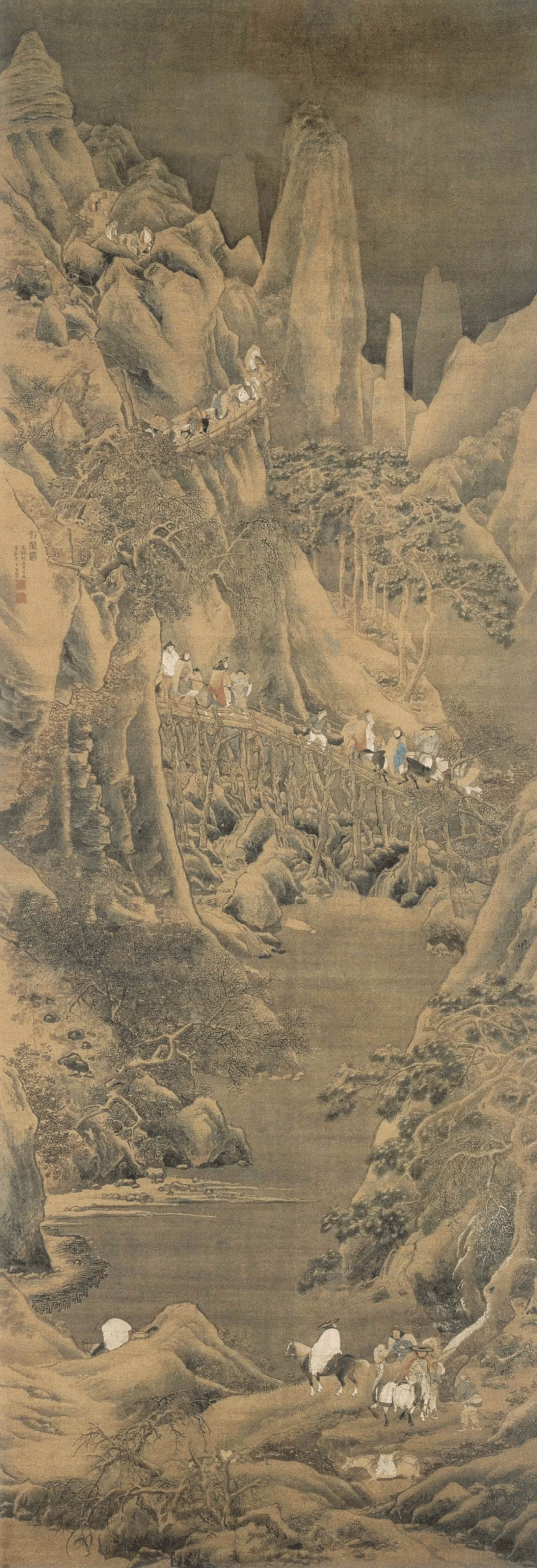 仇英 《剑阁图》 绢本设色 295.4×101.9cm 上海博物馆藏