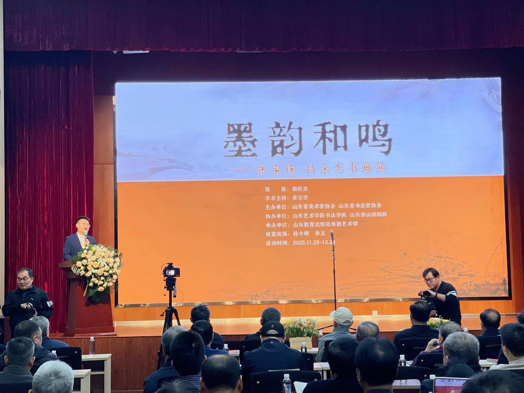 11月23日上午,由山东省美术家协会、山东省书法家协会主办,山东教育出版社鲁教艺术馆承办的“墨韵和鸣——张宝珠、吕金光书画展”在山东教育出版社鲁教艺术馆开幕,共展出张宝珠、吕金光两位艺术家80余件书画作品。这场展览不仅是两位创作者艺术成果的集中展示,更是一次关于传统艺术现代转型的深度探讨:当国画家以书入画境,当书法家执笔绘山水,他们如何在坚守文脉的同时,为古老的书画艺术注入新的生命力。