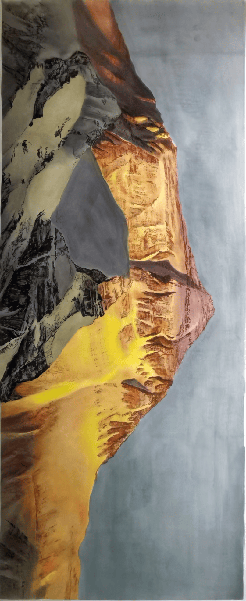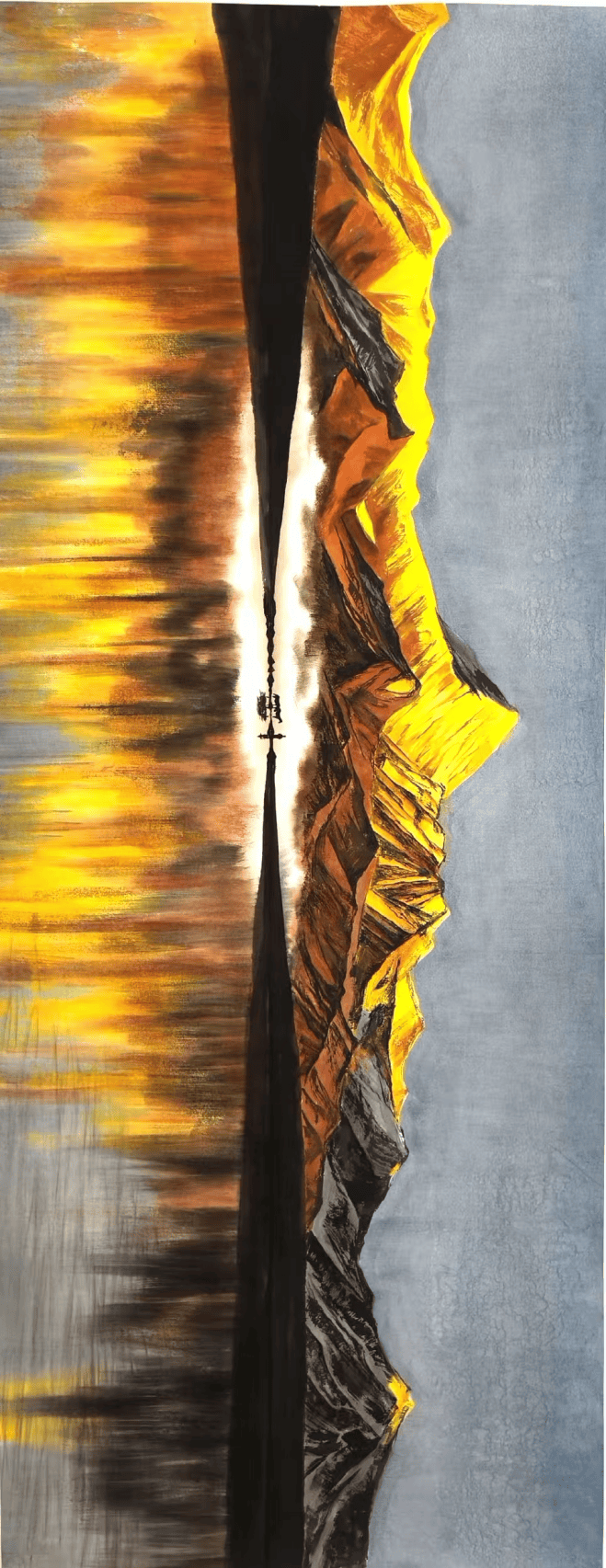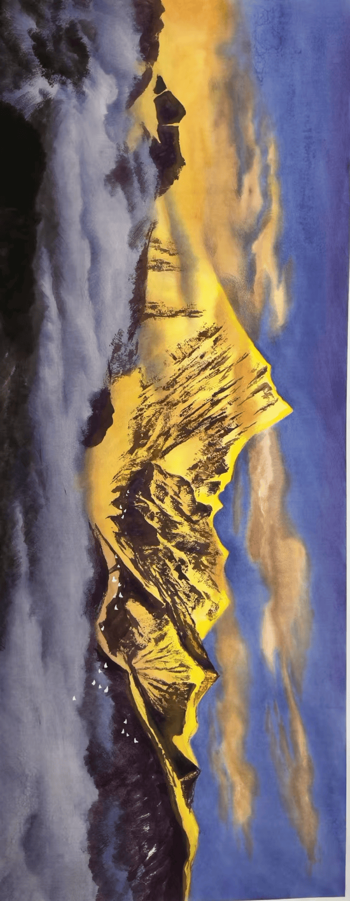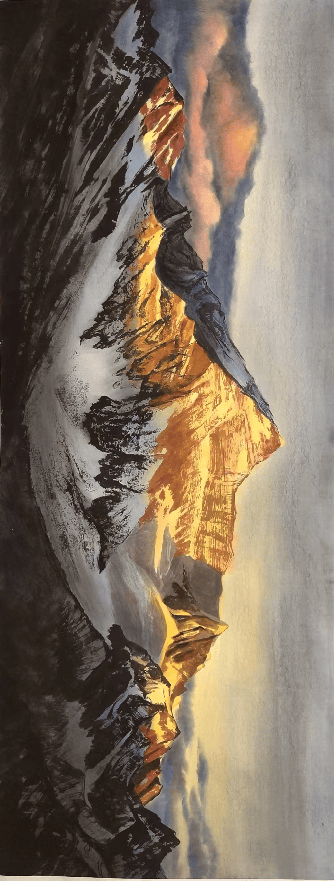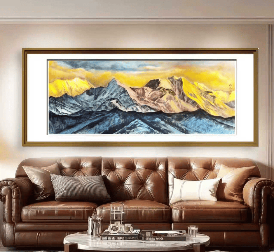画家为亮早期以创作黄河,大海,长城题材为主,被誉为著名爱国题材画家,近几年走偏国内能呈现自然奇观日照金山的各大名山,4次进入藏区2次进驻珠峰大本营创作大量日照金山作品。