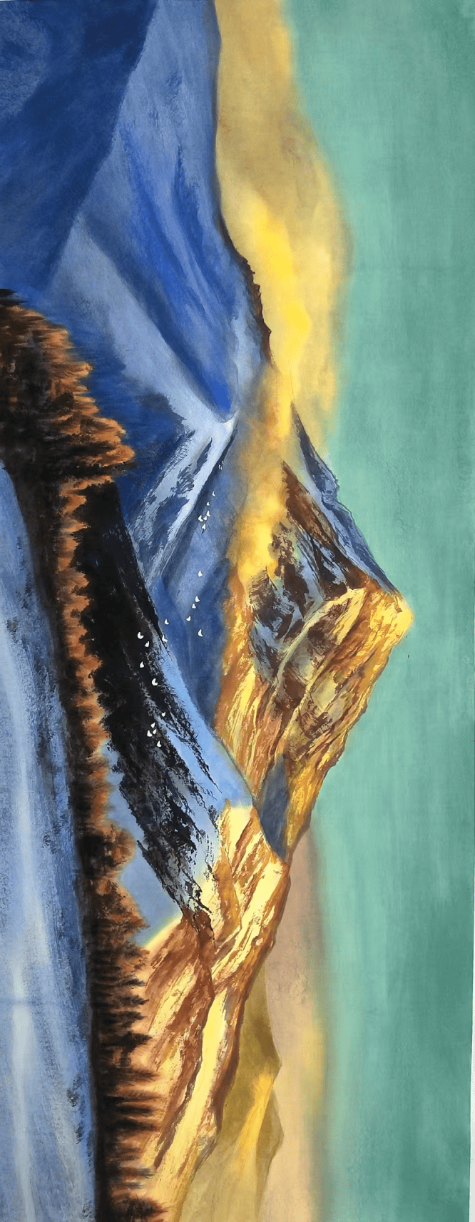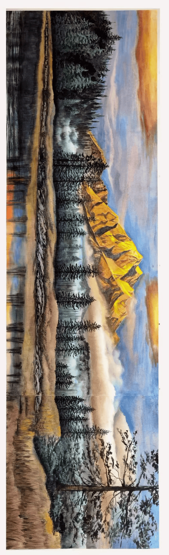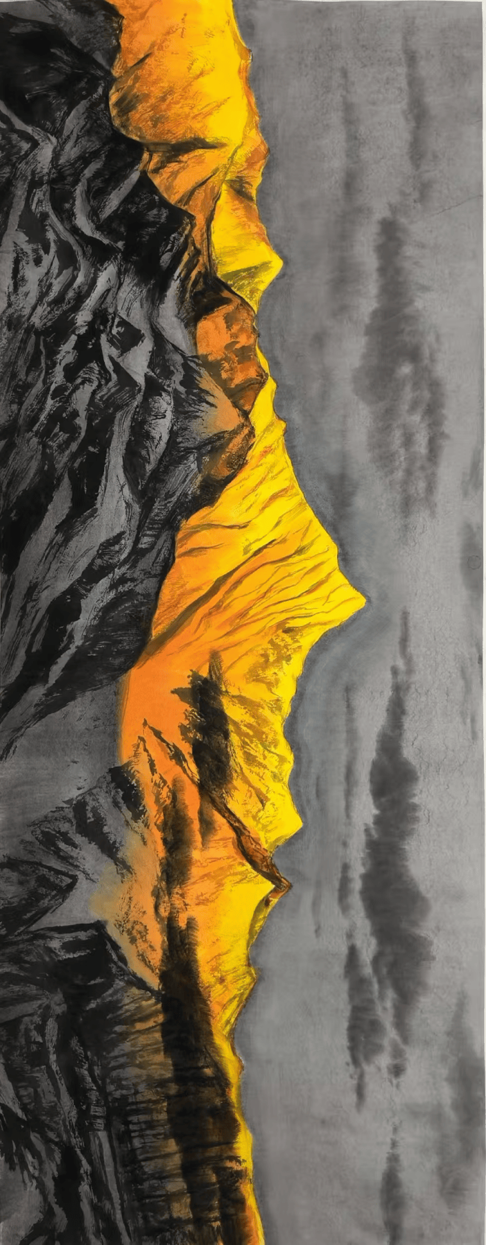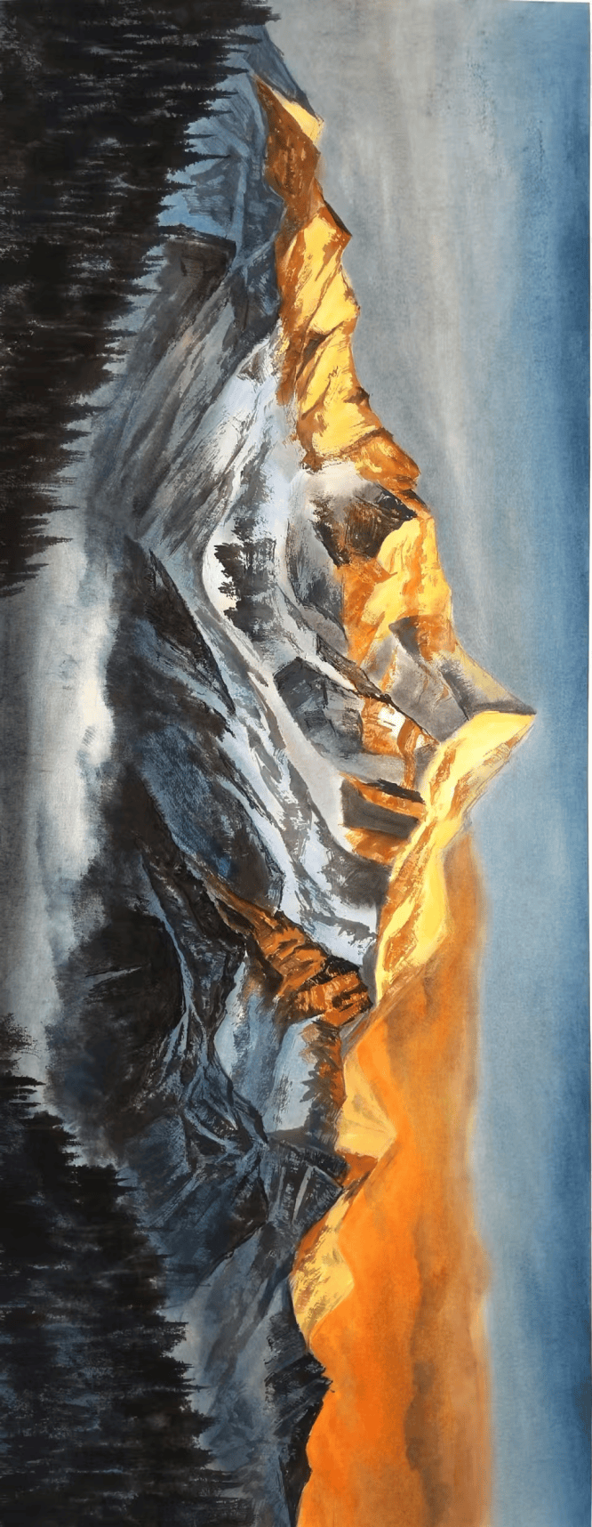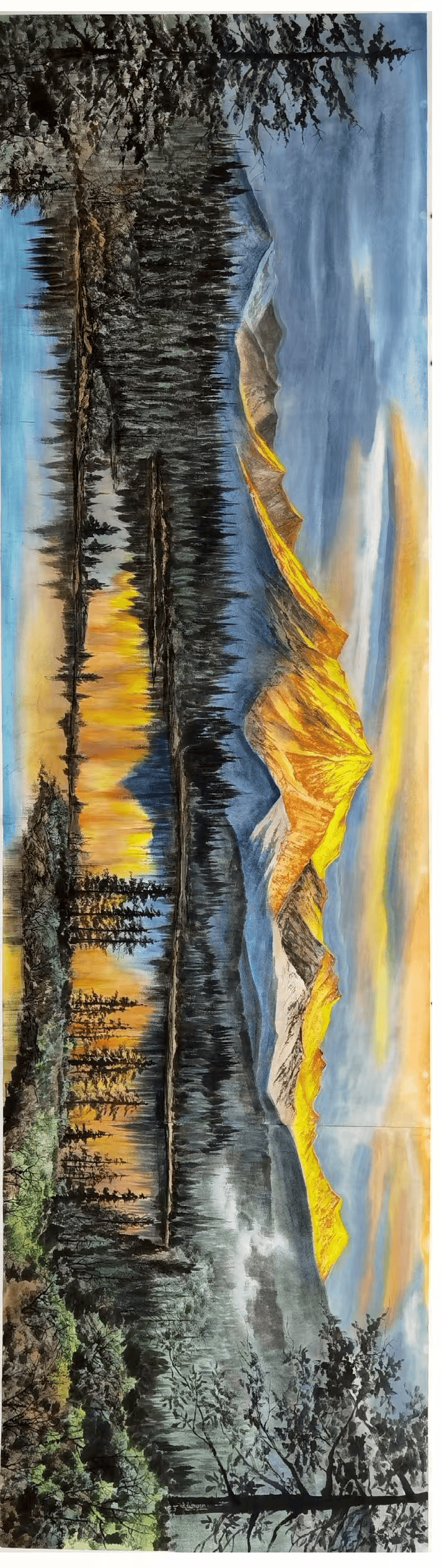 画家为亮早期以创作黄河,大海,长城题材为主,被誉为著名爱国题材画家,近几年走偏国内能呈现自然奇观日照金山的各大名山,4次进入藏区2次进驻珠峰大本营创作大量日照金山作品。