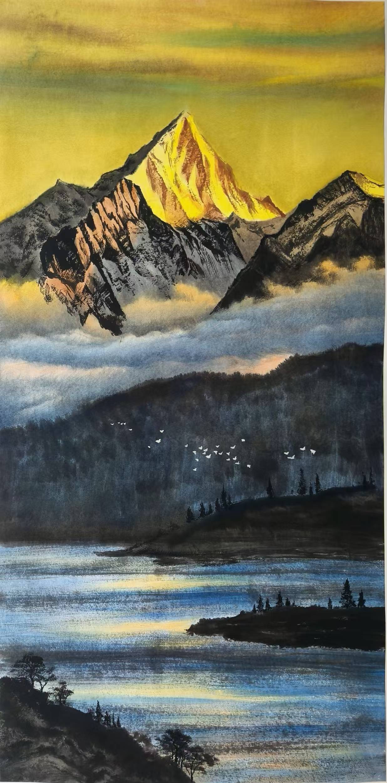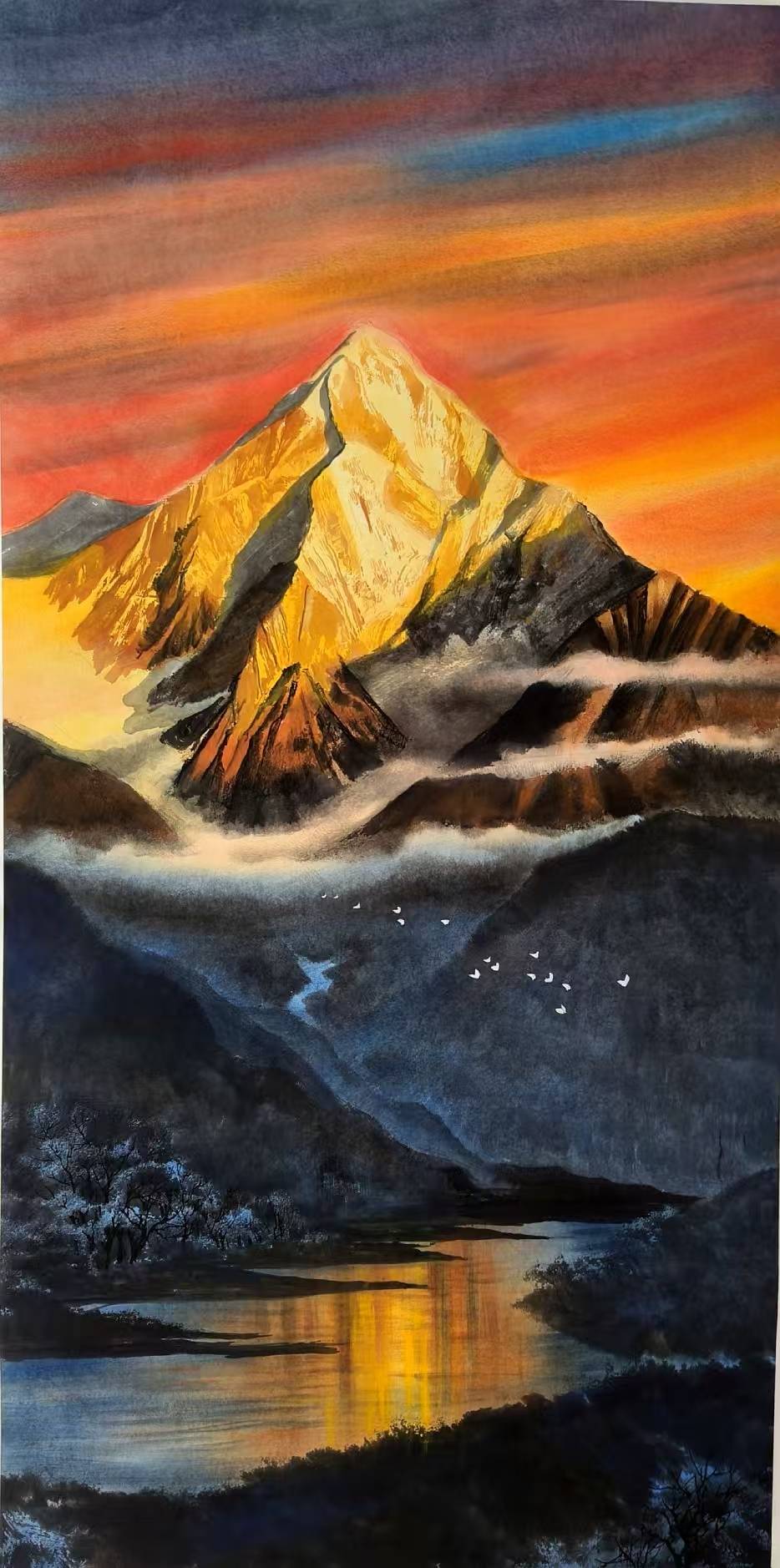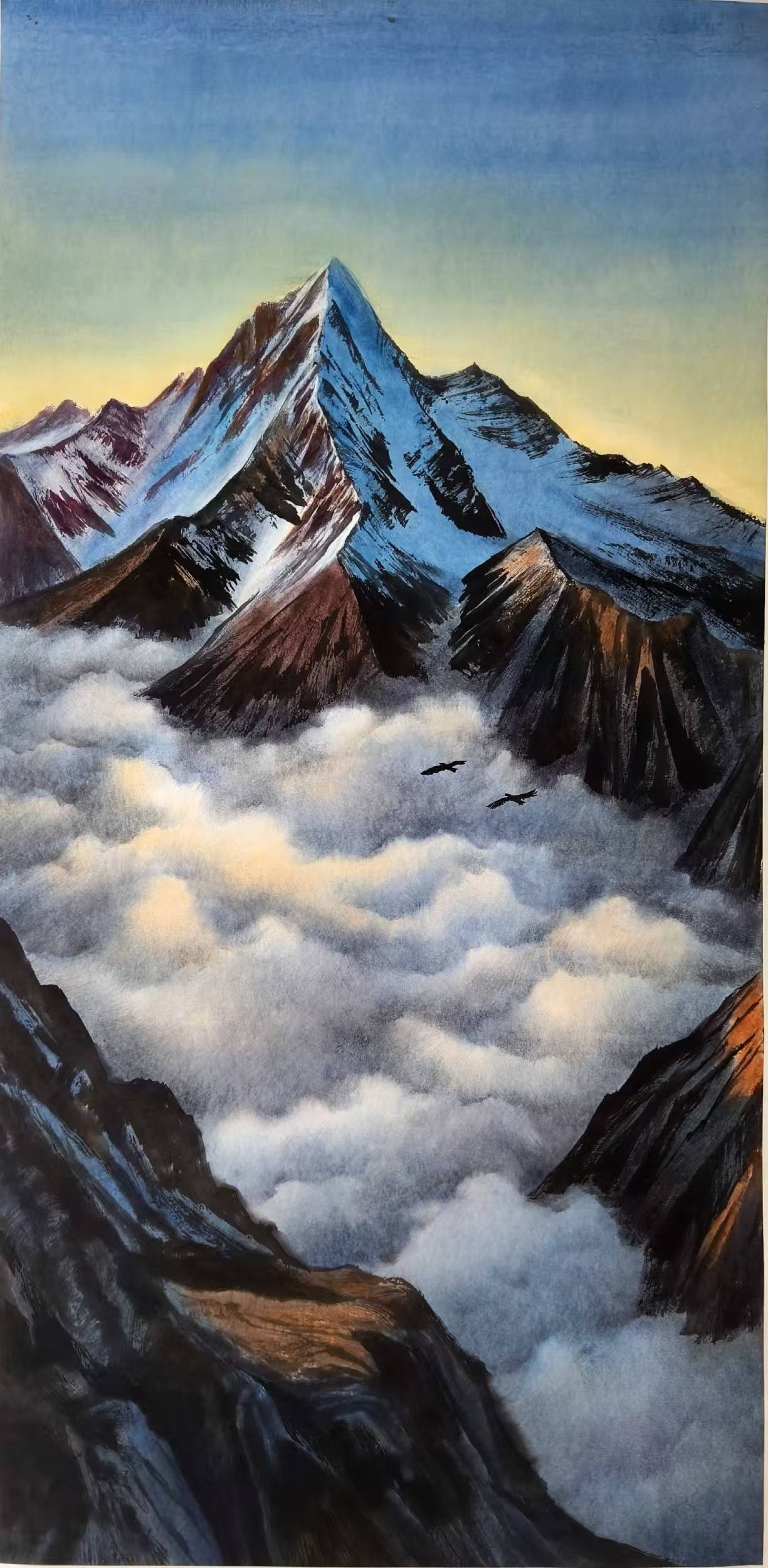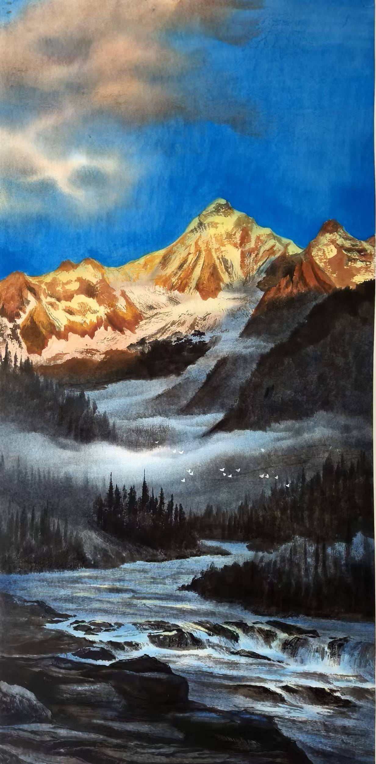 画家为亮,即是业内认可的国画金山创始人,也是众多题材的原创画家,画家为亮几十年来,不断探索创新新的题材满足市场需求,每年会推出新的系列,现有的,黄河,长城,大海,金山,梯田,梦之蓝等原创系列都收到业内较高的认可,希望大家多多关注。会有更好的系列呈现给大家。