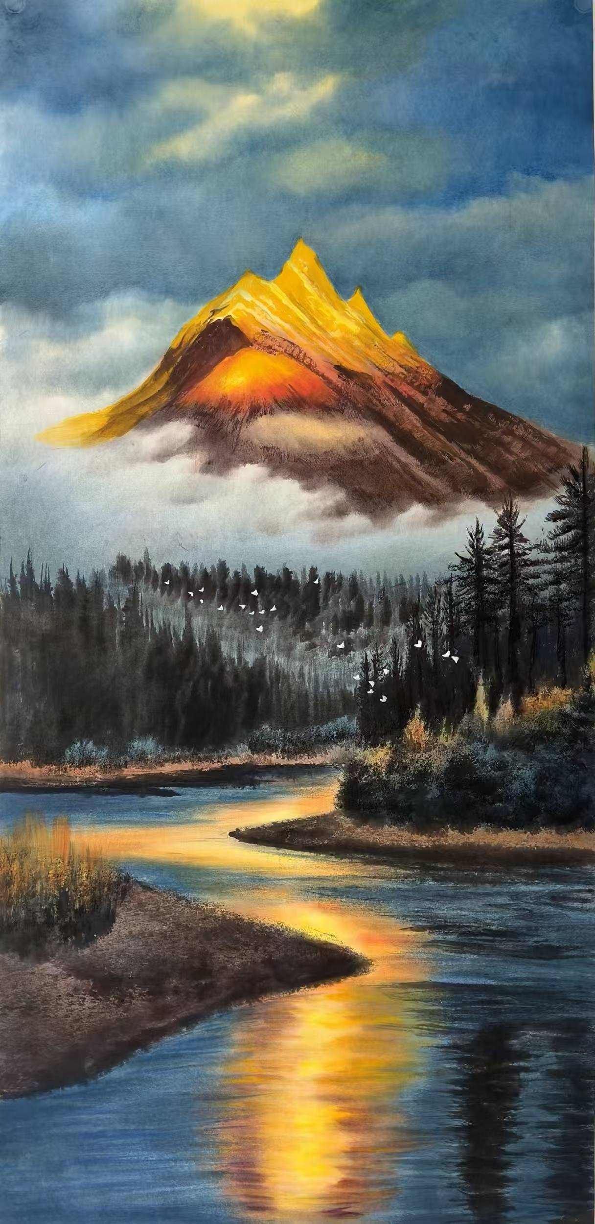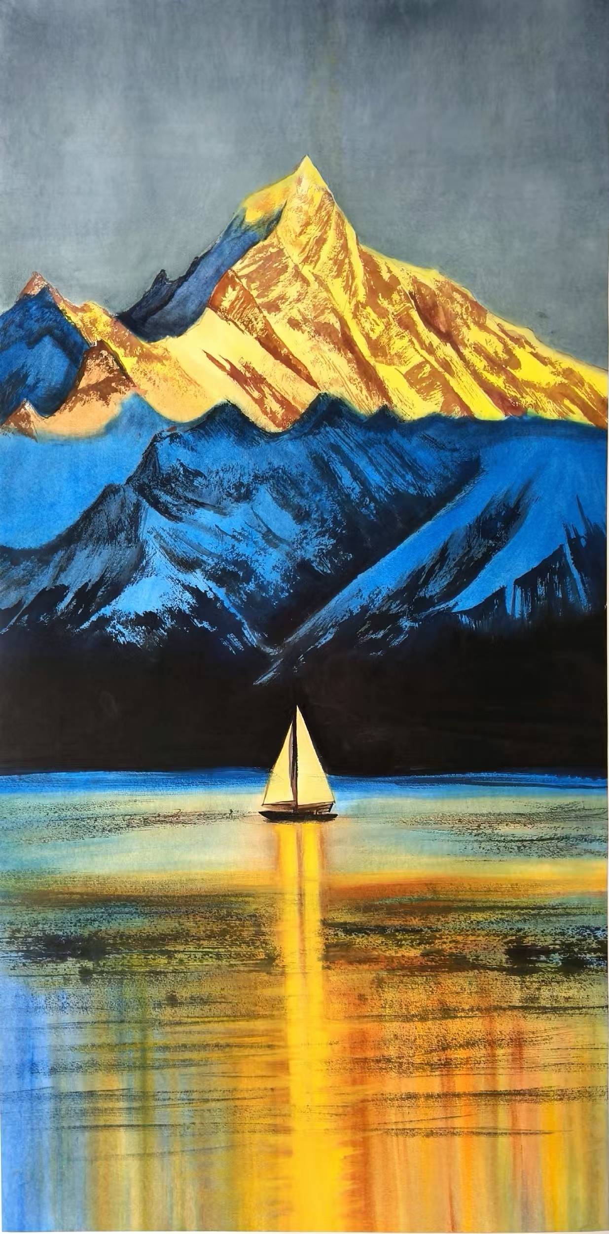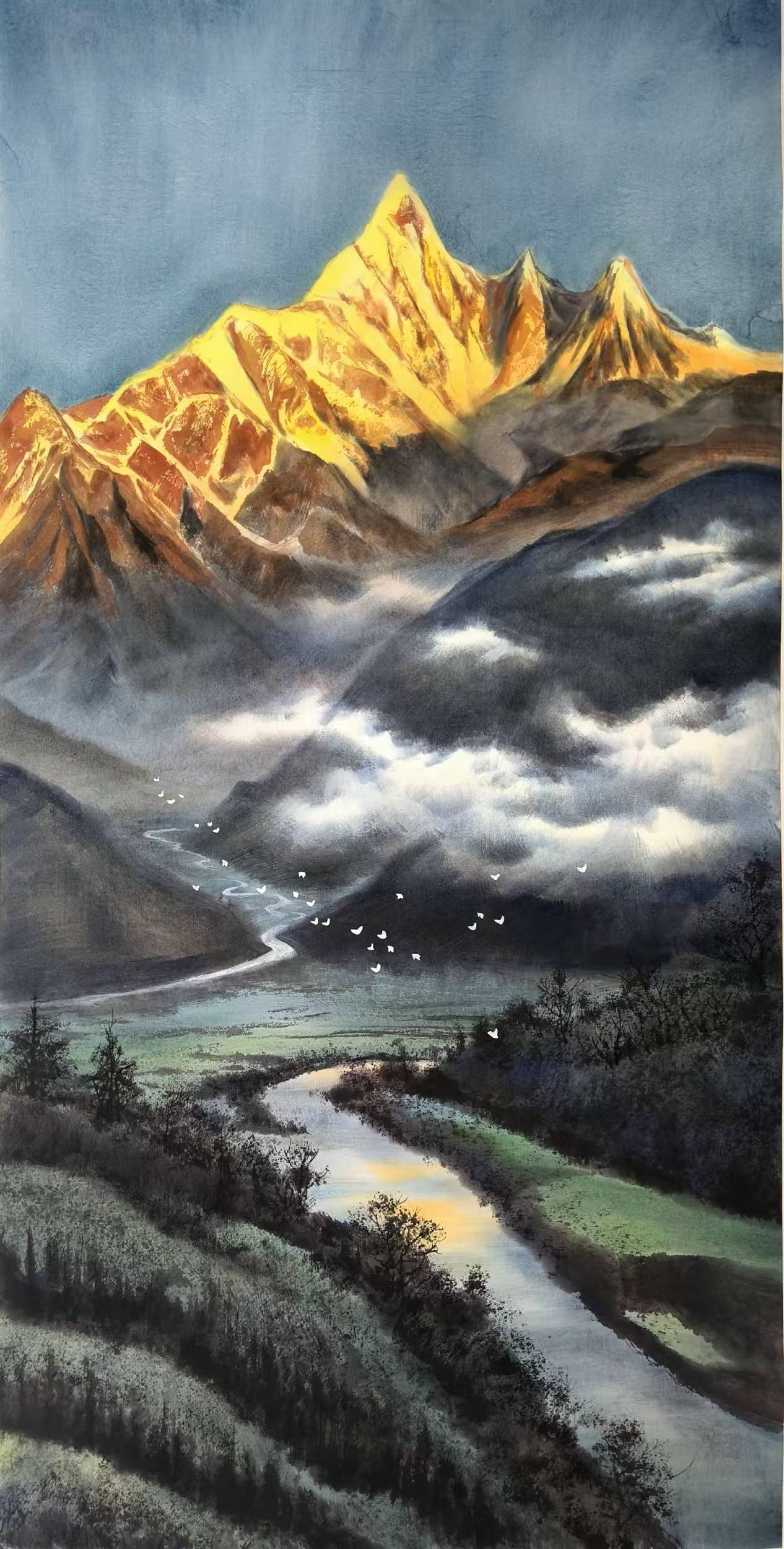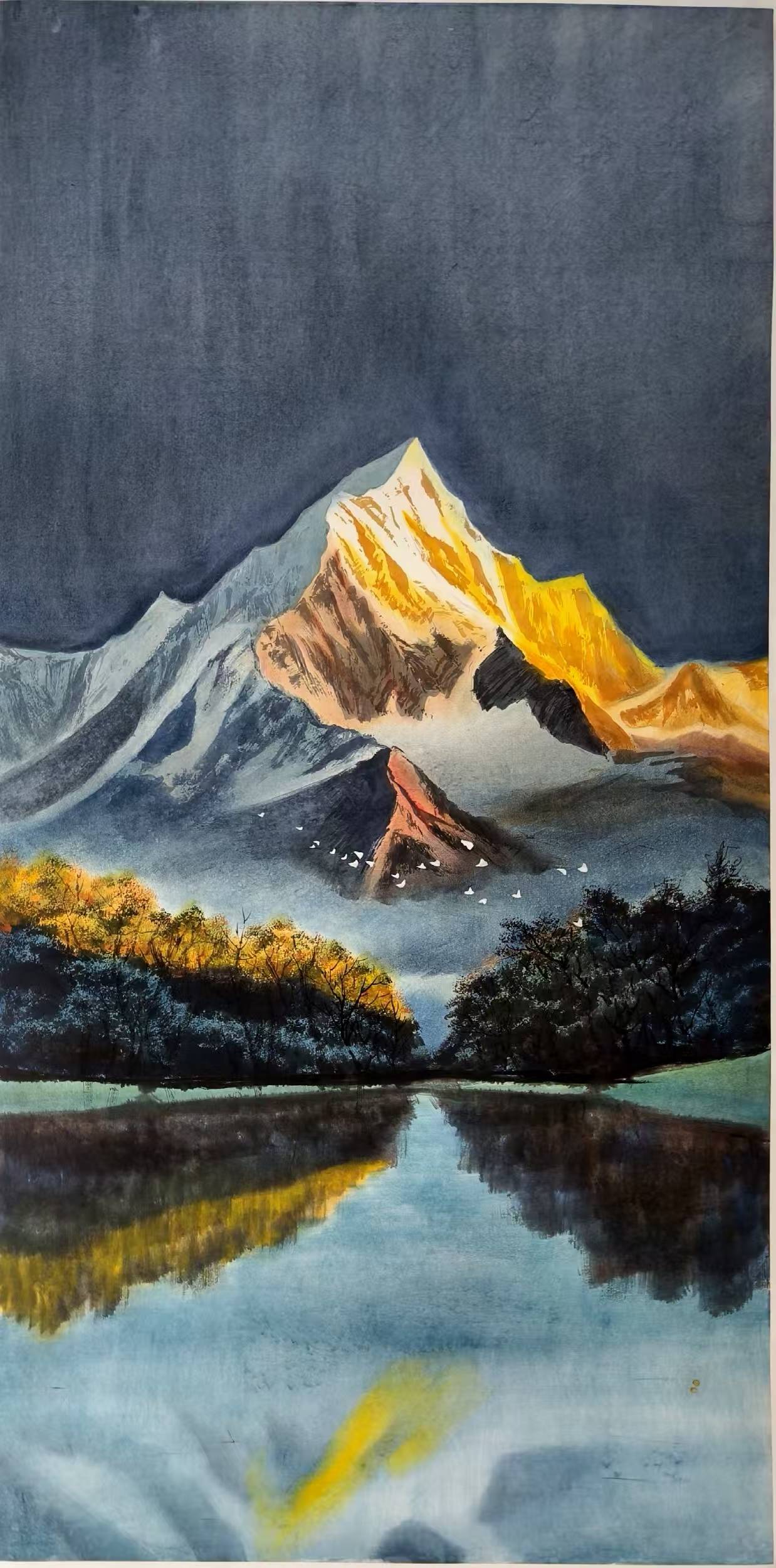 画家为亮,即是业内认可的国画金山创始人,也是众多题材的原创画家,画家为亮几十年来,不断探索创新新的题材满足市场需求,每年会推出新的系列,现有的,黄河,长城,大海,金山,梯田,梦之蓝等原创系列都收到业内较高的认可,希望大家多多关注。会有更好的系列呈现给大家。