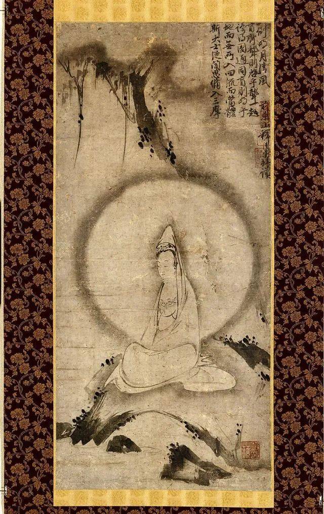 19、临济宗画僧明兆绘、建仁寺住持释清勇 赞:白衣观音图