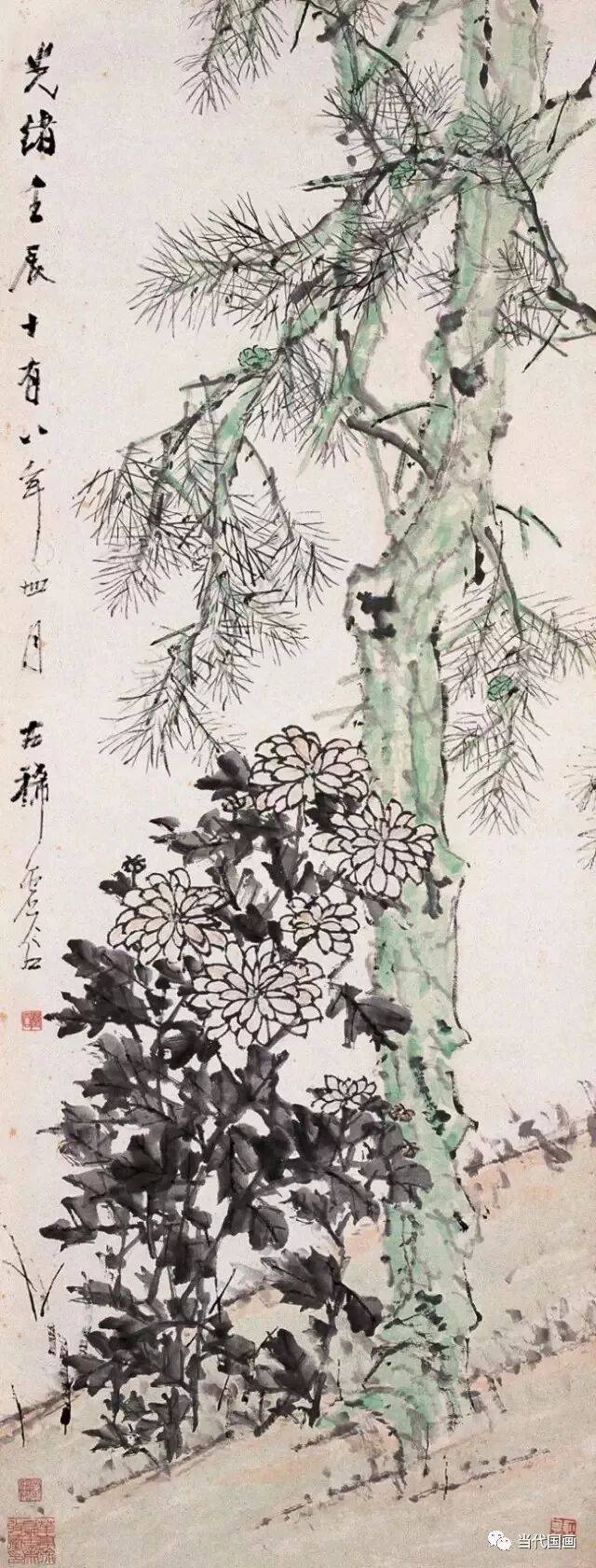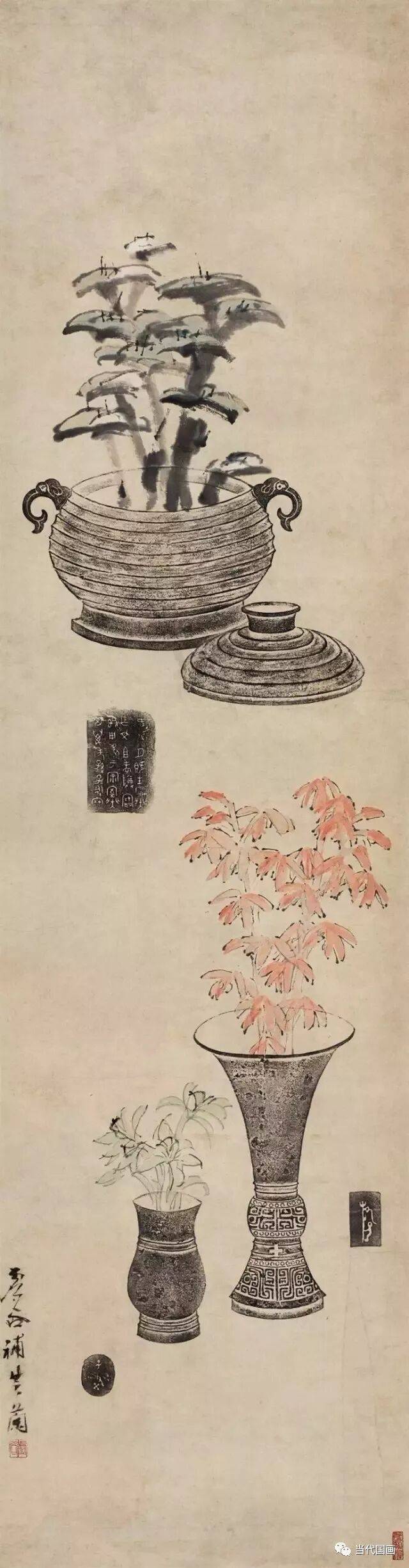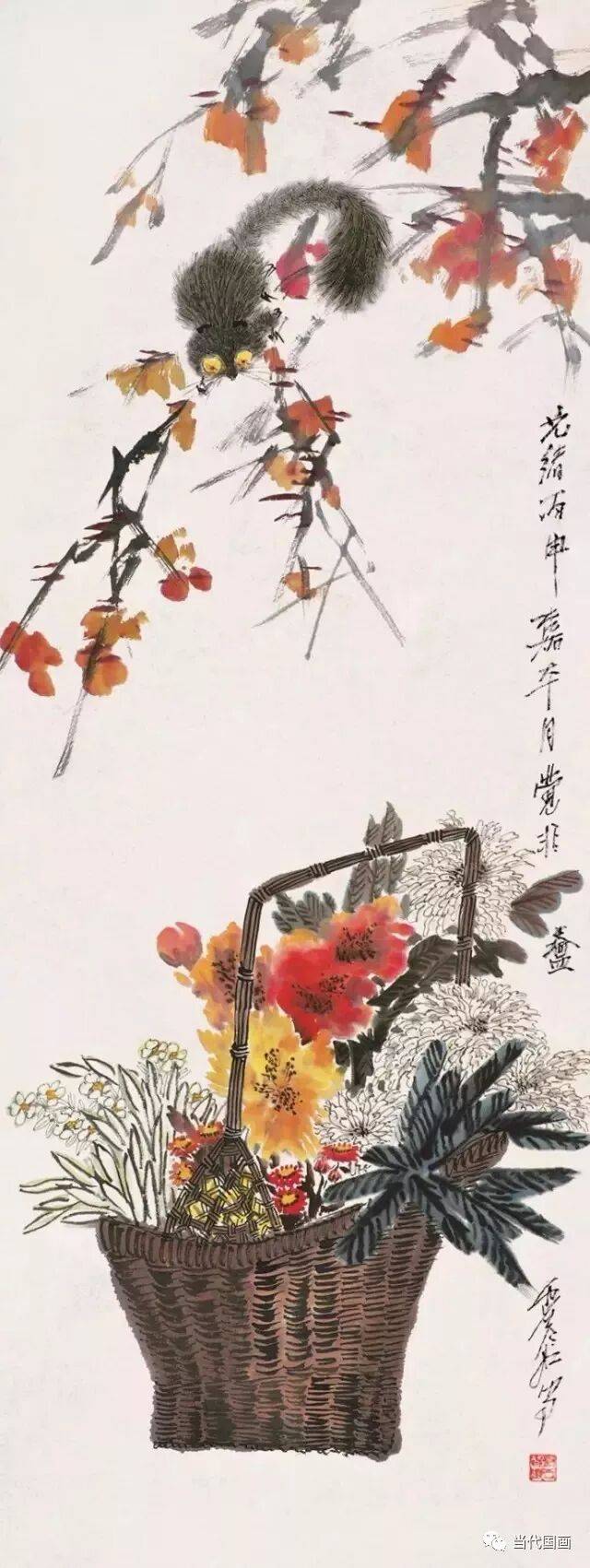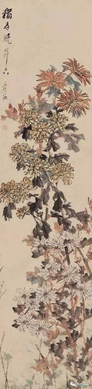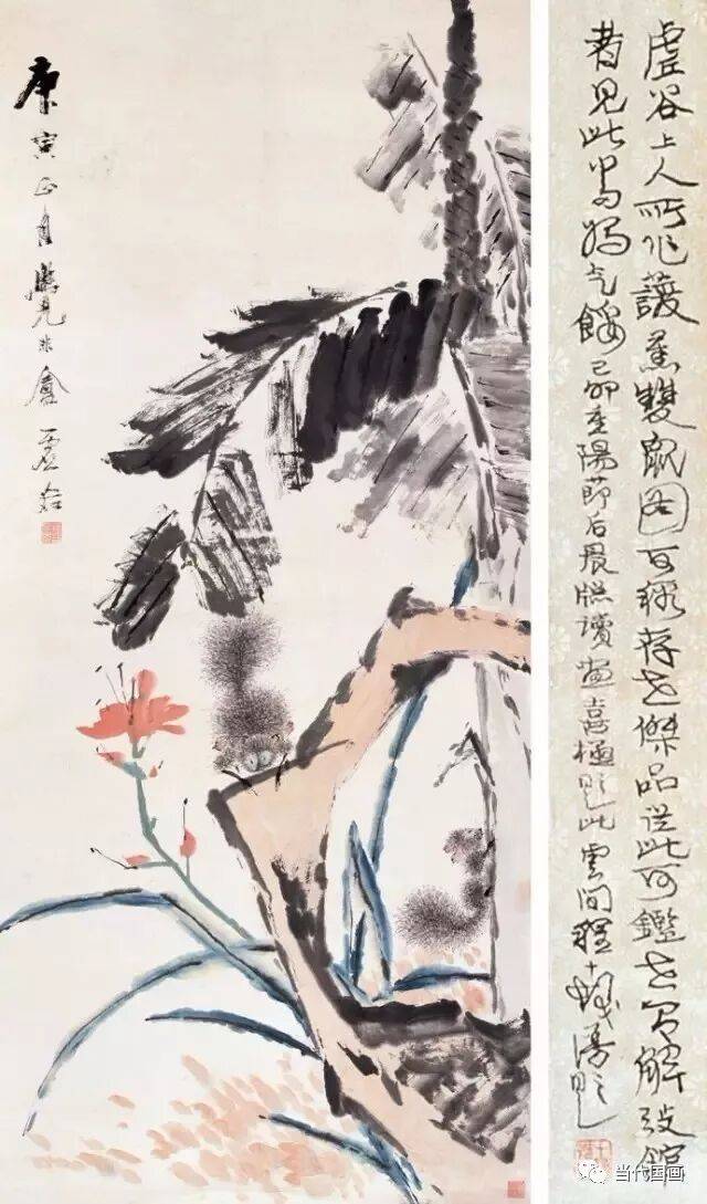 偶而亦用强烈对比色,作画笔墨老辣而奇拙。运用干笔偏锋,风格冷峭新奇,隽雅鲜活,无一带滞相,匠心独运,开具一格,海派大师吴昌硕赞其为“一拳打破去来今”。