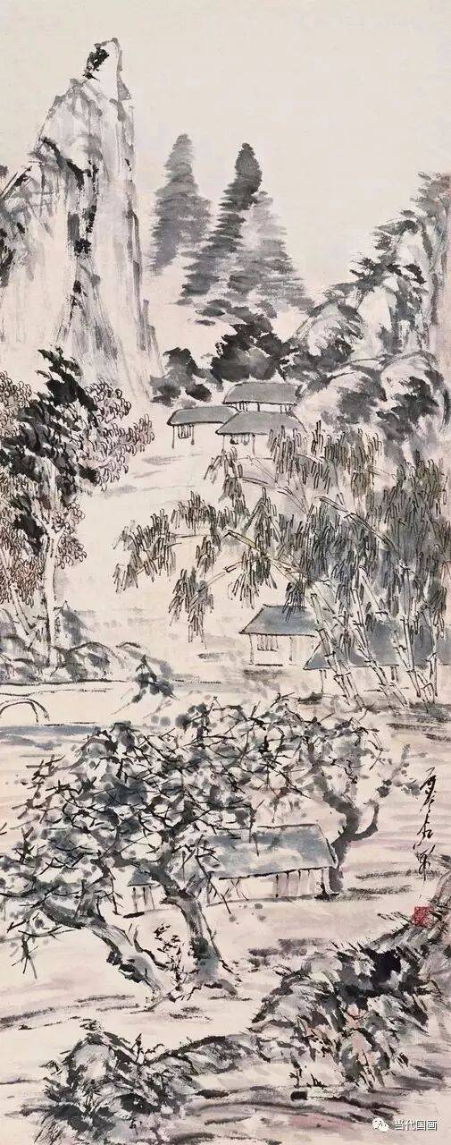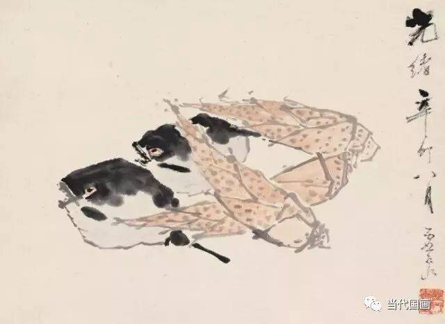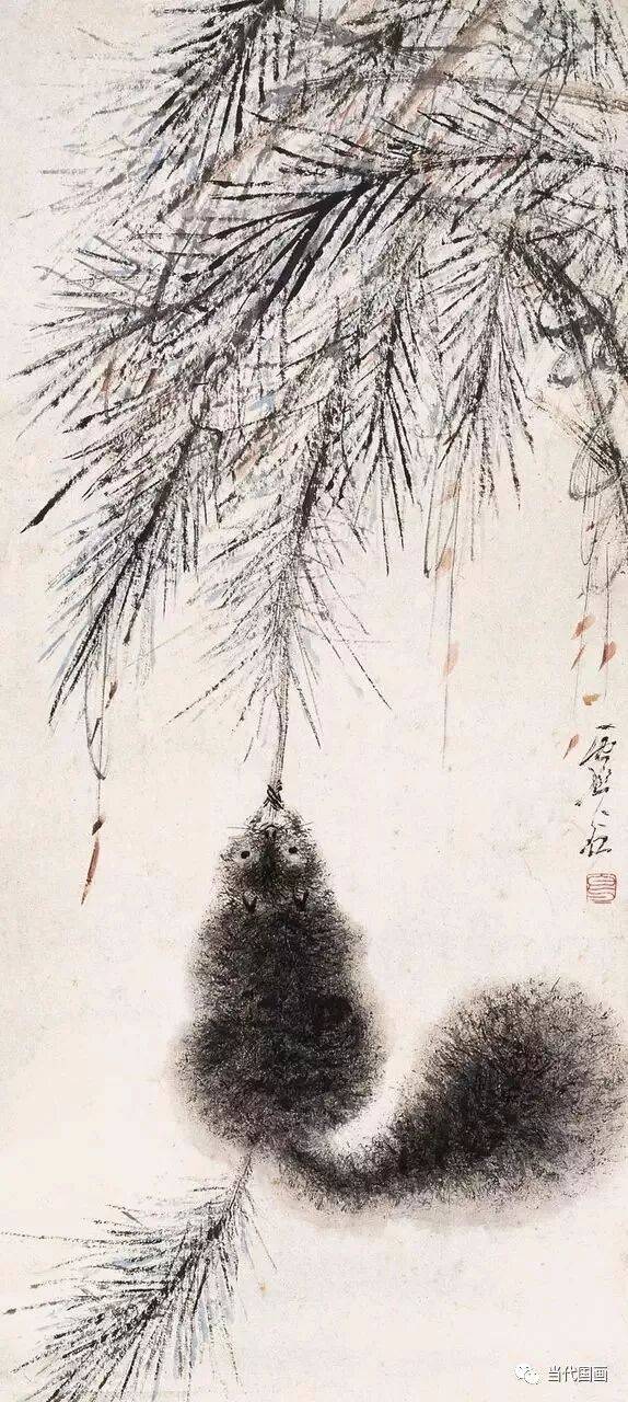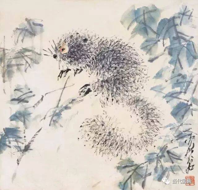 他作画行笔用线是宁方勿圆,顿中见力,见棱见角,下笔肯定,有着强烈的个性。