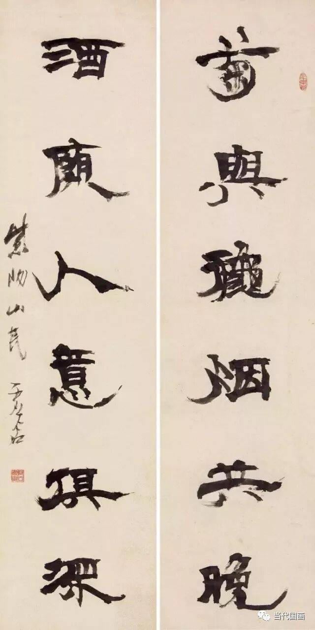 书法亦精妙,工隶书,风格伟峻高格,冷峭中刚毅的气息,亦喜用焦墨干笔,有高士古雅之气。