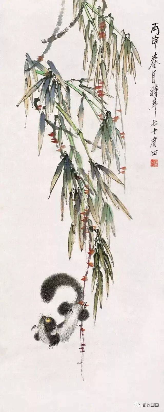 他善于调理把握章法的中偏、正欹、平奇、虚实、轻重、藏露与布白。使画面空灵,有强烈的空间感。这在长条画幅上表现尤为明显,横斜排列巧妙,气势浩大,敢于突破常规。平中求奇,从而达到静中有动,虚实相生,生意盎然。
