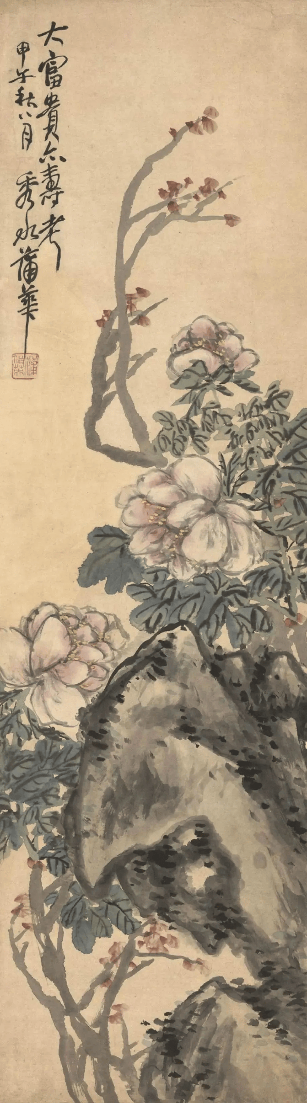 《青云而直上图》轴藏思无垢斋;《朱竹墨石图》轴三十年(甲辰)为吴昌硕作《倚篷人影出菰芦图》轴图录于《蒲华书画集》。浙江人民美术出版社出版《蒲华》书画集。