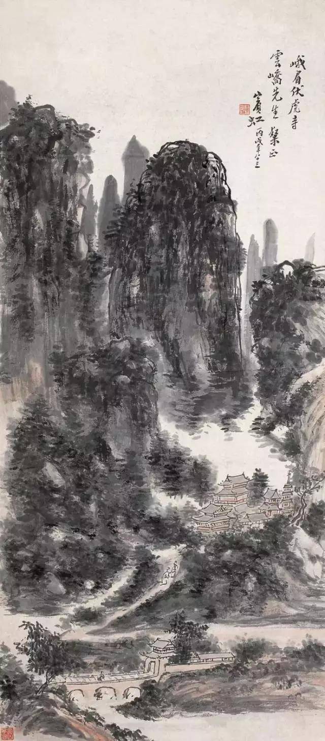 (1946年作 峨眉伏虎寺 75.5×34cm)