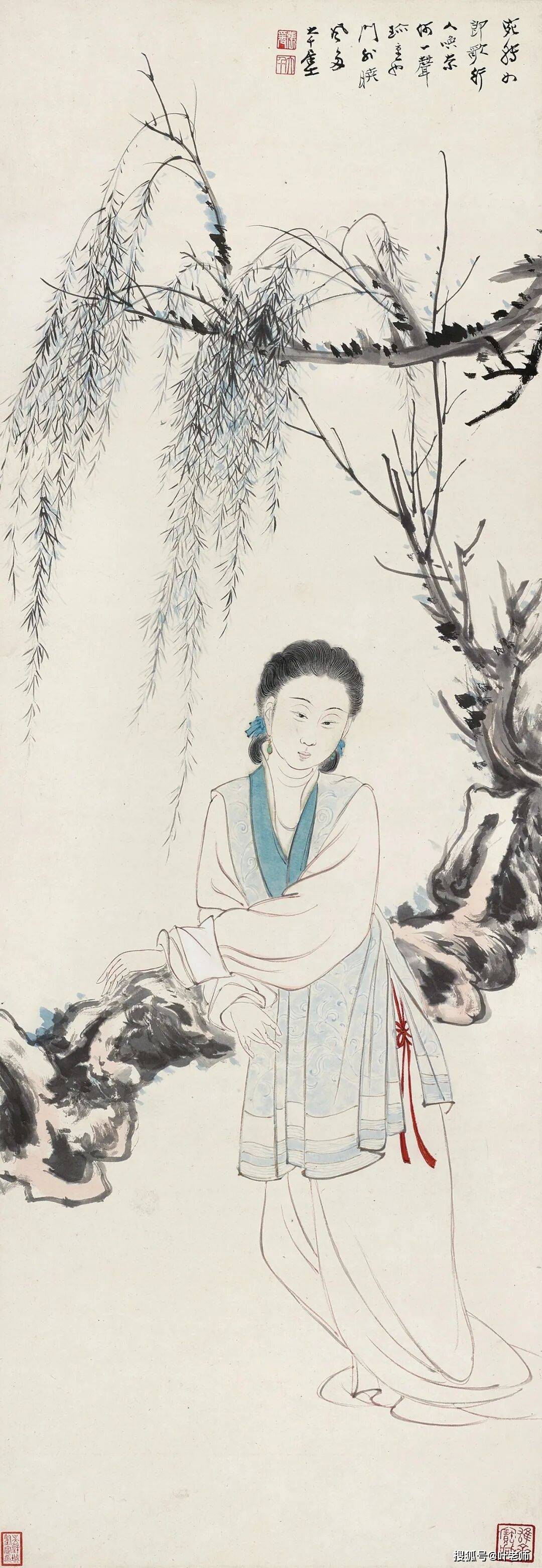 柳荫仕女