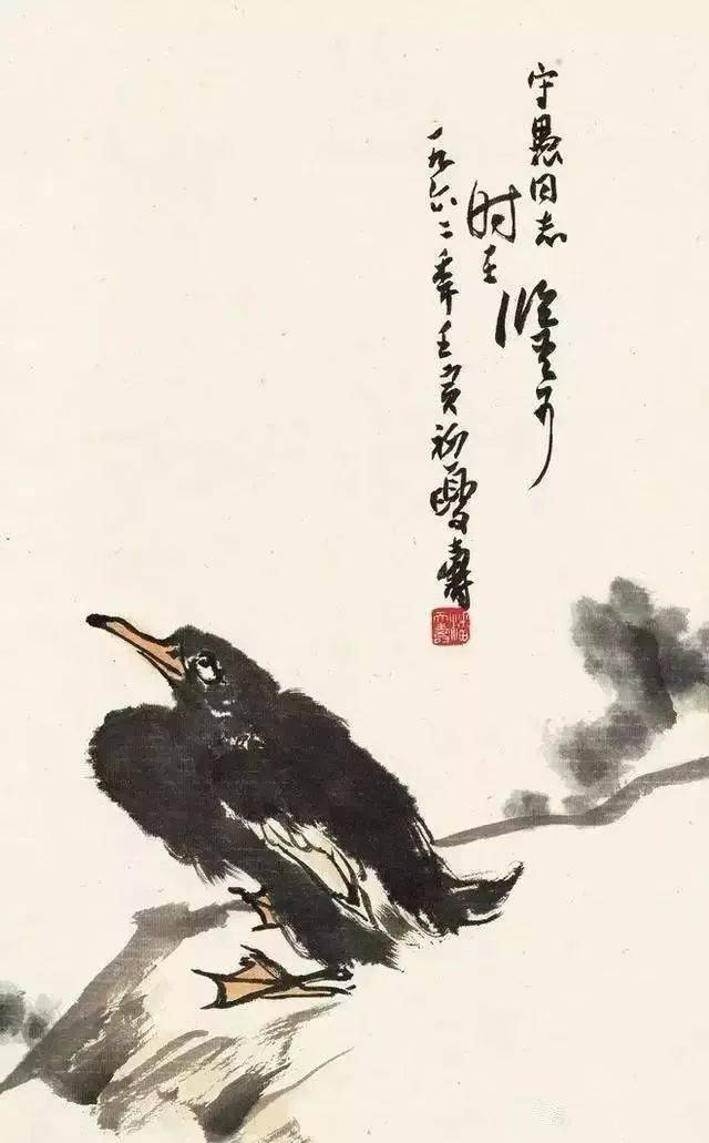 潘天寿尝谓:学习要谦虚,作画要“自负”,要大胆,要憋着气抓住重点,从大处、高处、新奇处涉想。所贵取法乎上,而不是墨守成规,师古自缚。描绘自然,也要动中取势,变中见奇。平莫如水,遇危石则银花四溅,重莫如山,绕白云而通体皆灵。