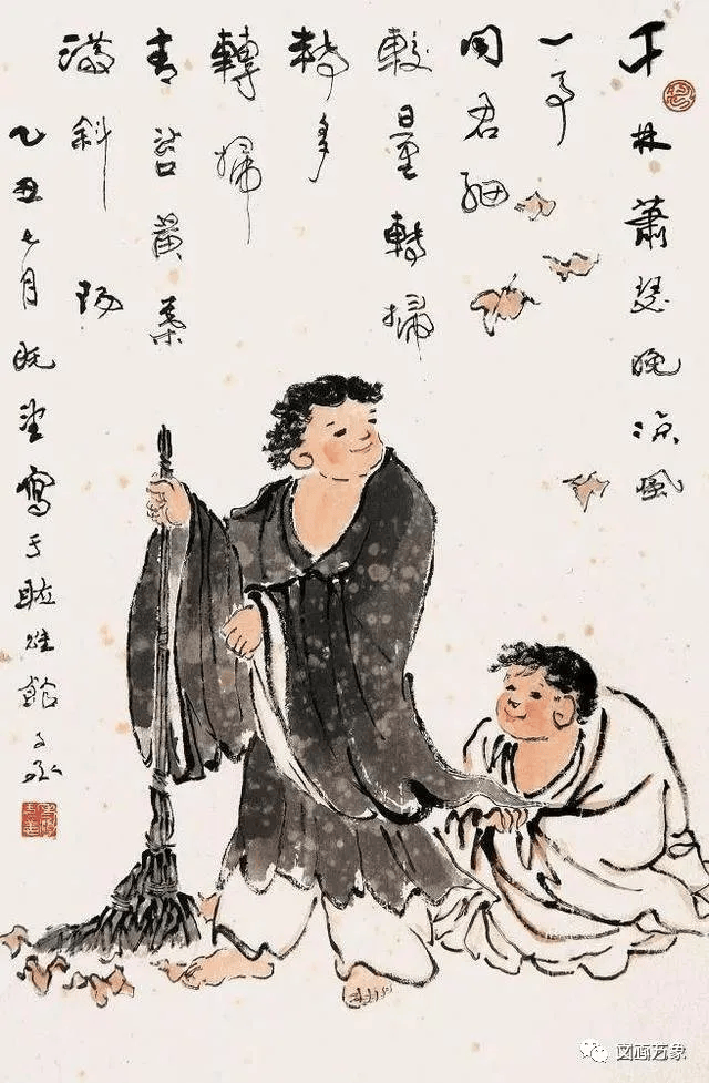 沈子丞老先生是上海中国画院第一批入院的画家,擅长人物、山水、花鸟,可谓多才多艺。一组人物画,人人面带笑容,笑面人生。