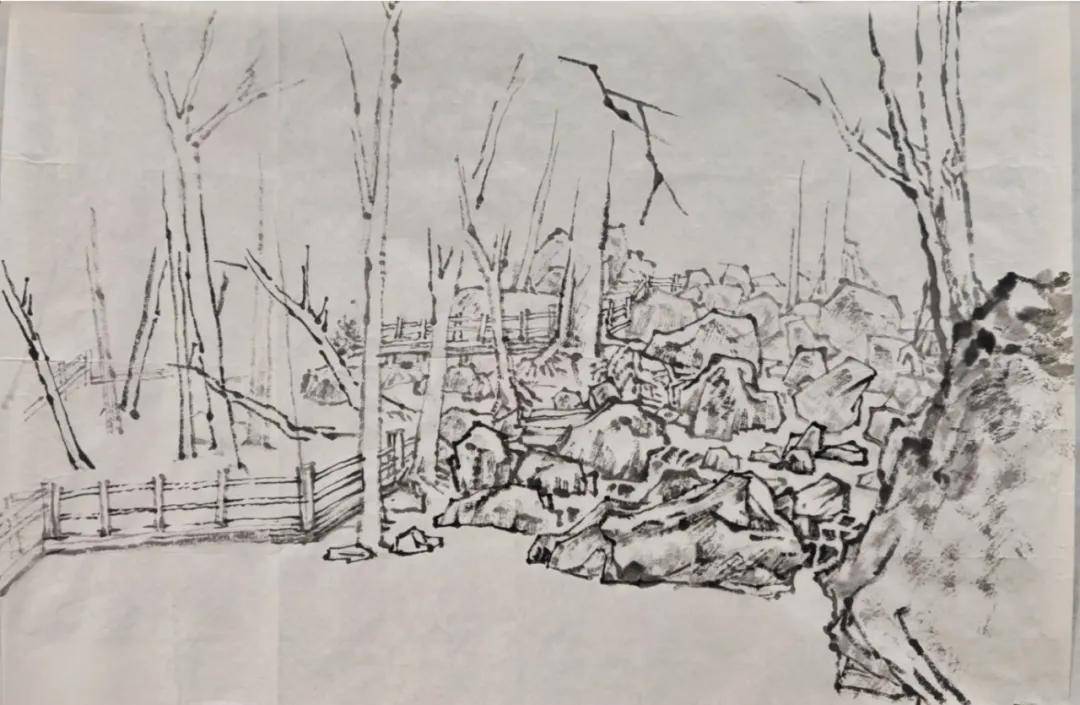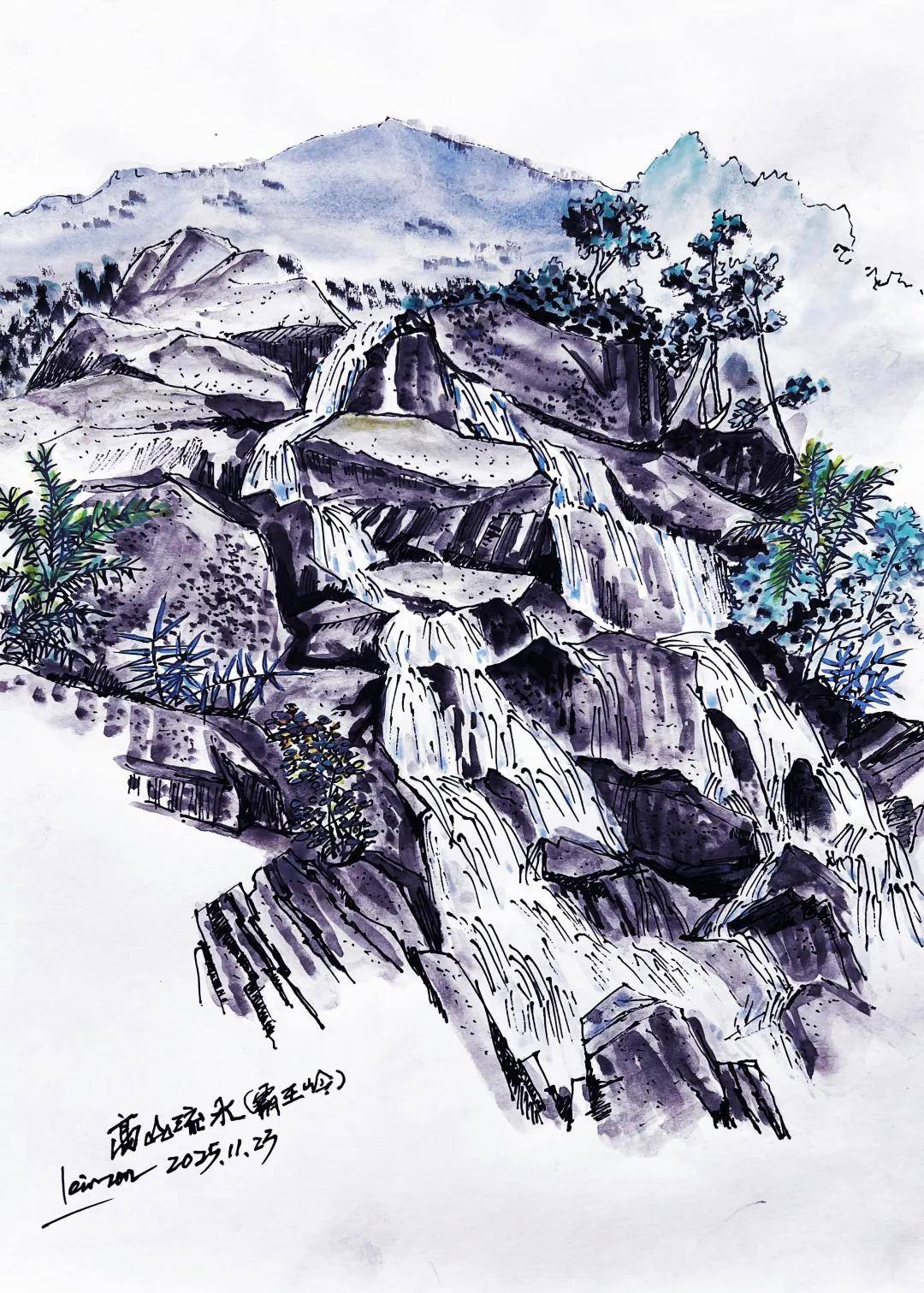 霸王岭之高山流水 42x30cm 钢笔淡彩