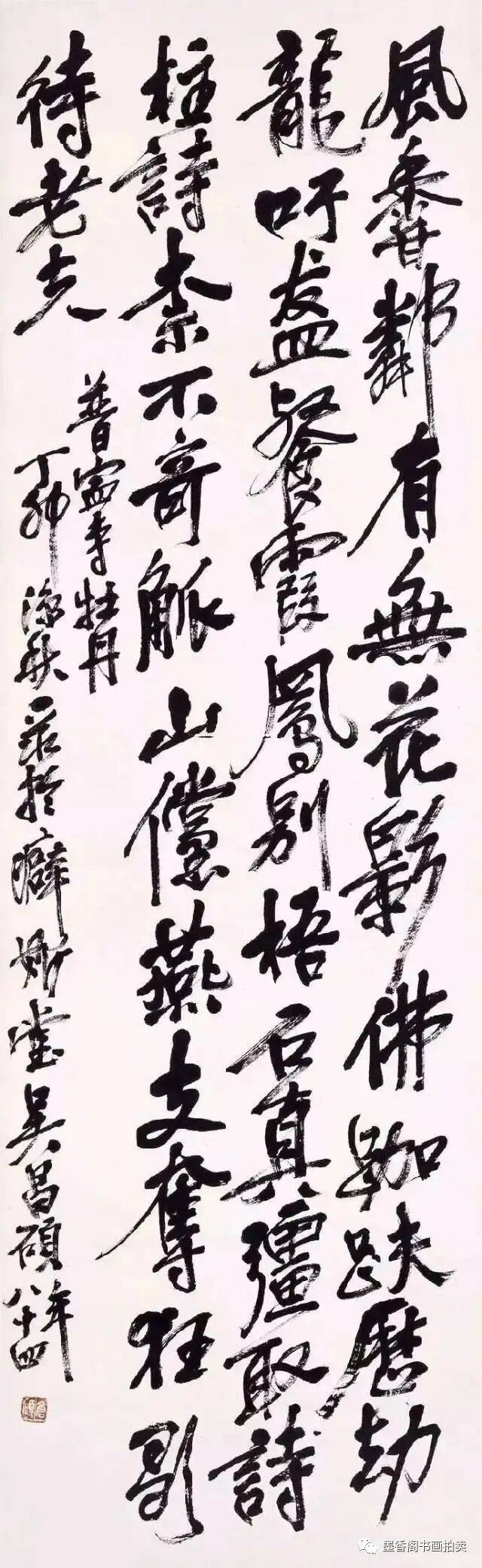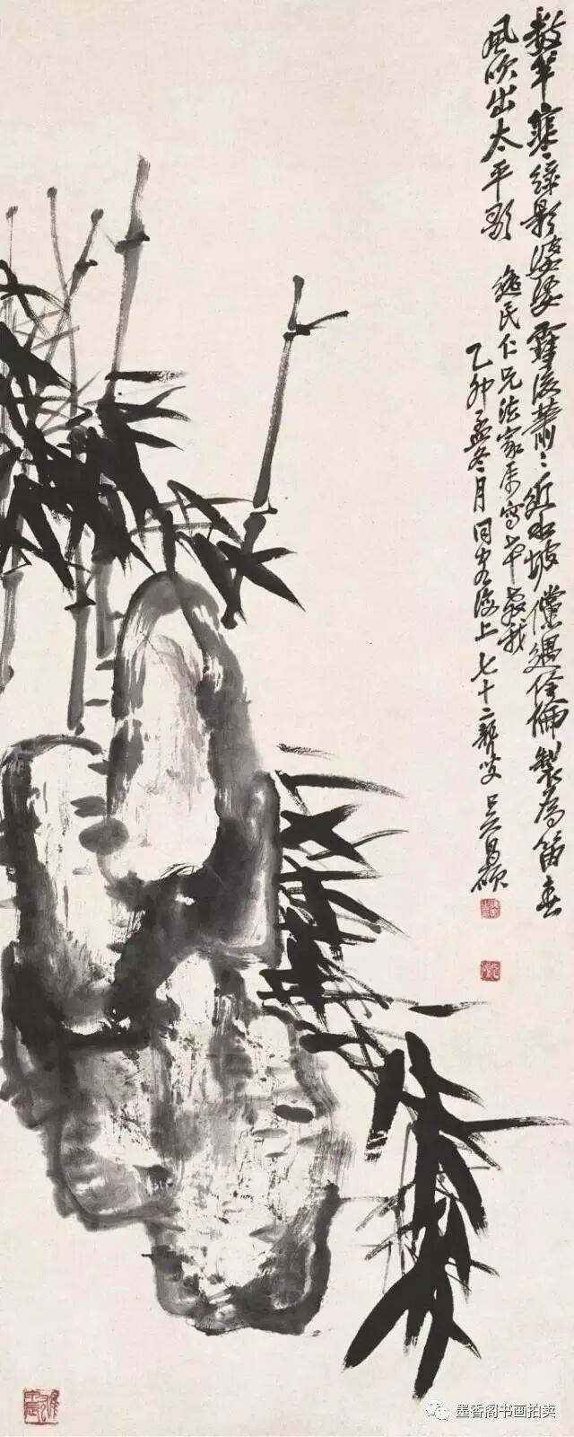 吴昌硕(1844-1927 ),集诗、书、画、印于一体,以“四绝”之能贯通古今,又以金石之气为筋骨,铸就一种前无古人、后启来者的雄浑笔墨。他是我国书画界划时代人物,陈师曾、齐白石、黄宾虹、潘天寿、傅抱石、李可染等无不受其影响。