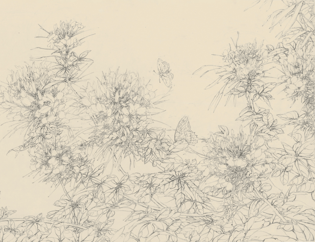 在漩门湾湿地公园的日子,是一场独特的,与细微之美、灵动之韵的相遇。描绘醉蝶花时,我体会到了“笔随势走”。湿地里的醉蝶花不是规整的盆栽,细长的花梗顶着层层花瓣,风一吹便如蝶翼般颤动。如今回望这段写生旅程,雁荡山的野趣、漩门湾的细微、石塘的烟火,都成了我笔墨里的“养分”,让我懂得,真正的花鸟画,不是在画室里“造”出来的,而是在山野间“寻”来的。唯有踏遍山河、贴近自然,才能让笔下的花鸟有灵魂,让笔墨里的世界有温度。