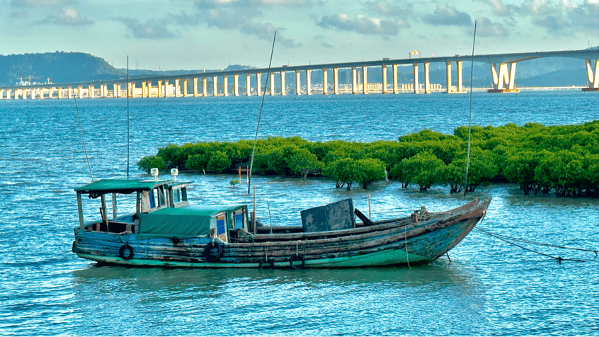石塘的晨光中,渔网如经纬铺展,网隙间探出细碎的野花,渔人早已开始辛勤劳作,空气里弥漫着大海的味道。待最后一缕光隐去,月色如水,灯火渐熄,喧嚣褪尽,万物归于沉静。