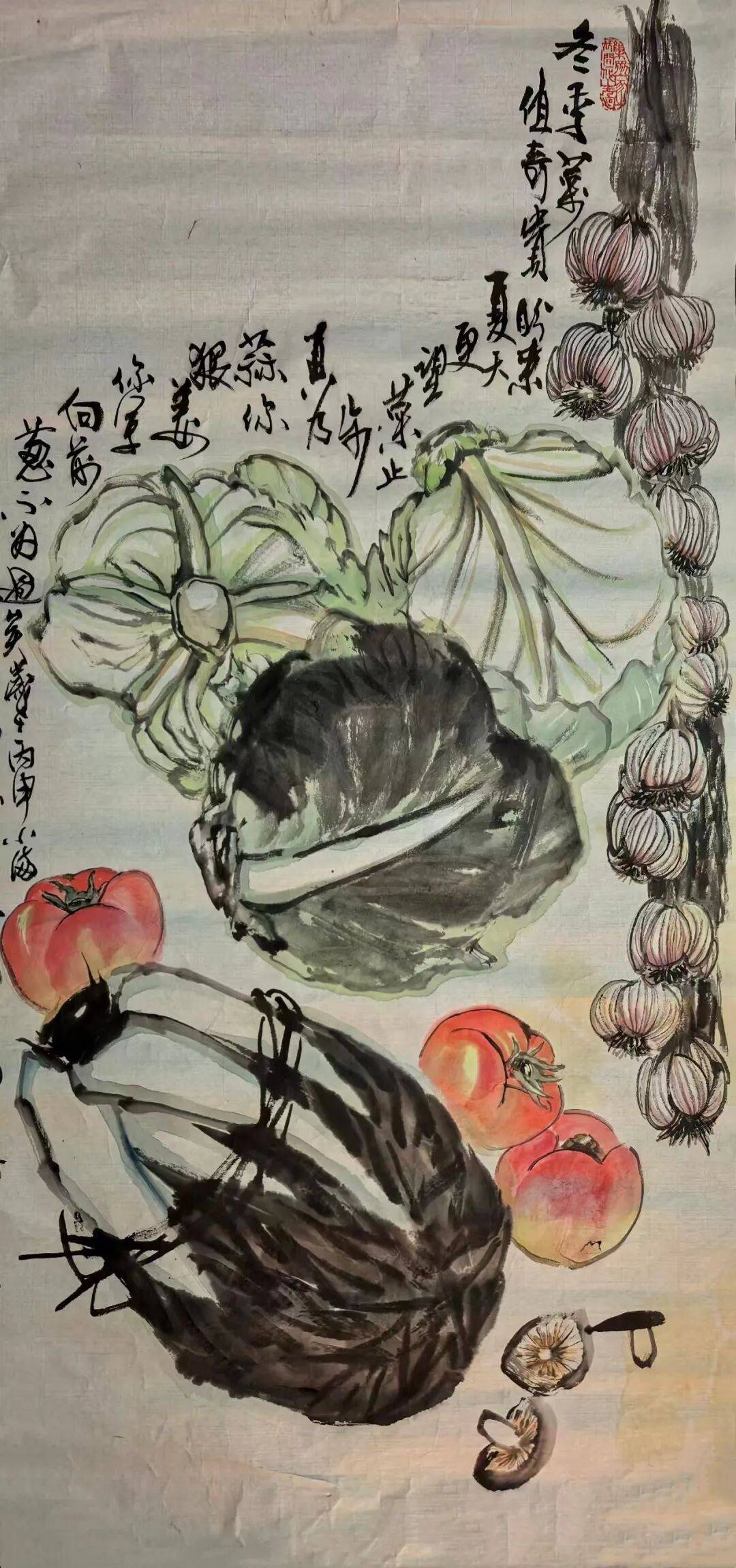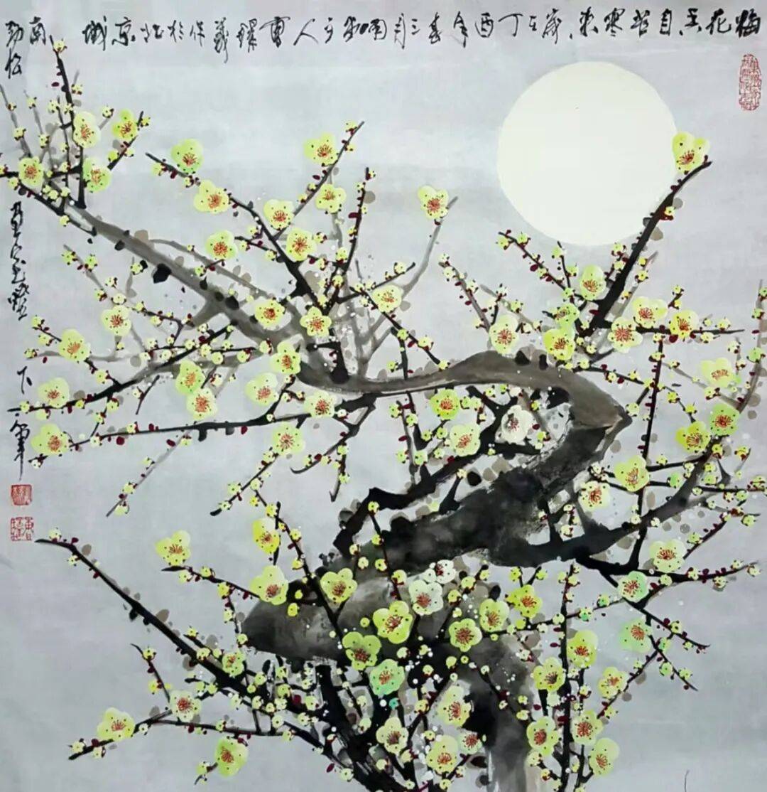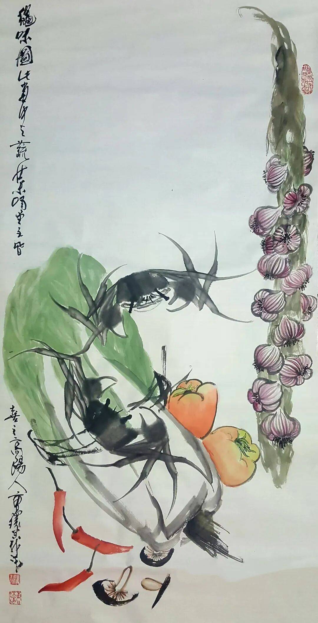 2. "文人精神的延续" 他继承“诗书画一体”传统,常在画中题写自作诗词。如《幽兰》配诗“性本清芬品不暇,自在深林养气华”,以兰喻己,彰显文人孤高气节。书法用笔亦融入绘画,兰花叶脉以草书笔意挥洒,荆棘则以隶书方折表现,形成“以书入画”的美学特质。