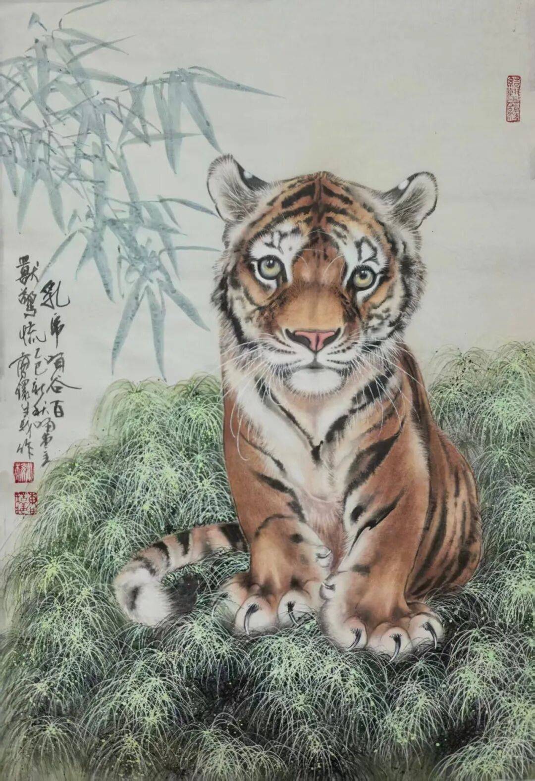 3. "民族精神的时代投射"其虎的阳刚之气被赋予“民族奋起”的象征意义。如《远瞩》中虎目炯炯凝视远方,背景山河壮阔,呼应改革开放初期国人昂扬向上的集体心态。
