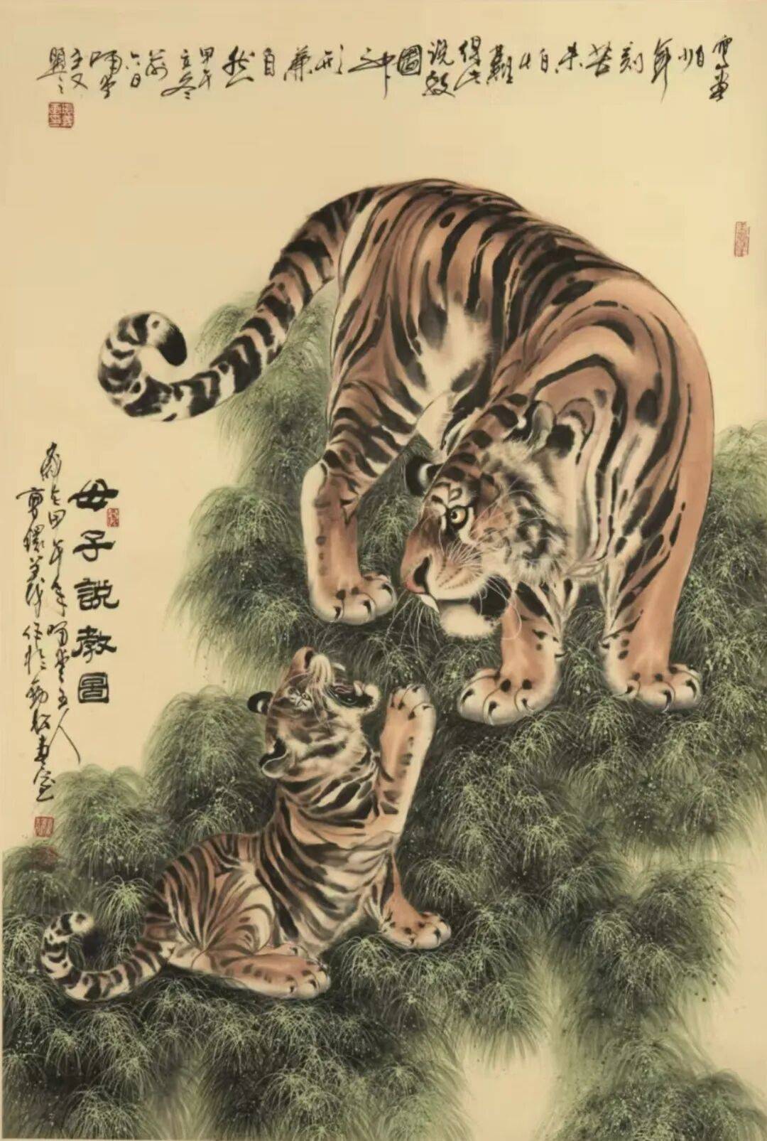 曹环义的艺术实践为国画创新提供了重要启示:1. 题材的普世化重构他将虎从“猛兽”转化为“人文符号”,如《教子》通过虎的亲子互动探讨教育哲学,使传统题材获得现代阐释。