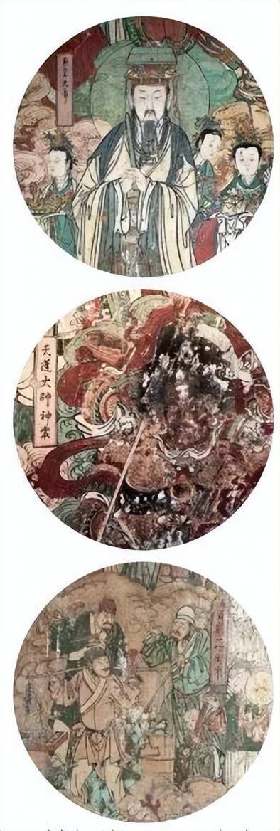毗卢寺壁画局部:(从上至下)玉皇大帝、天蓬大帅、九流百家。图/毗卢寺博物院供 视觉中国