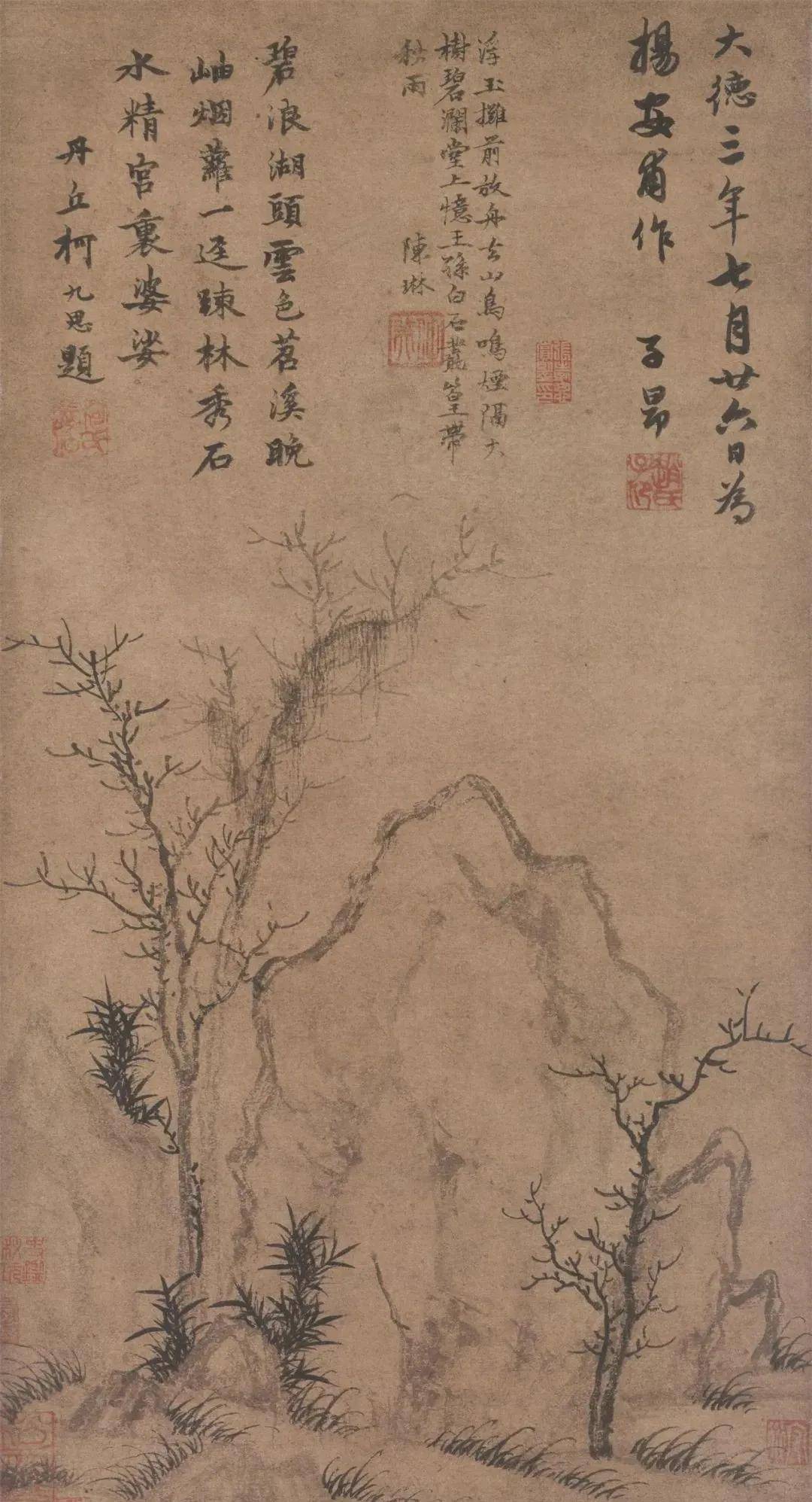 元 赵孟頫 疏林秀石图