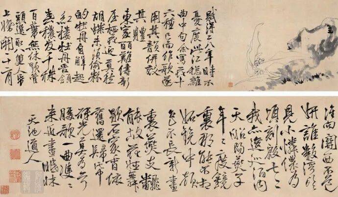 徐渭(1521~1593),字文清,后改字文长,别号青藤、天池、田水月等,山阴人。中国明代晚期杰出的文学艺术家,列为中国古代十大名画家之一。山水、人物、花鸟、竹石无所不工,以花卉最为出色,公认为青藤画派之鼻祖。所著有《徐文长全集》、《徐文长佚草》及杂剧《四声猿》,戏曲理论《南词叙录》等。