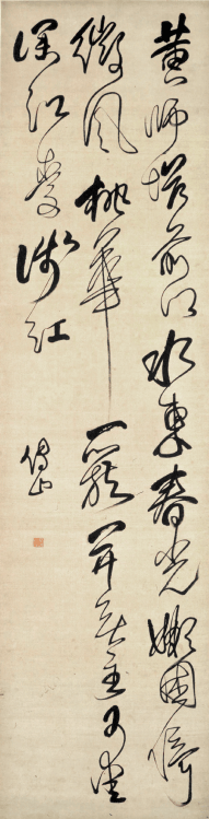 此诗附在《训子帖》之后,在《训子帖》中,傅山提出书艺的四个标准“四宁四毋”,即“宁拙毋巧,宁丑毋媚,宁支离毋轻滑,宁直率毋安排”。“四宁四毋”沿袭了晚明的怪奇之风,主张书风破坏平衡感、产生支离感,随意而书,蔑视传统。不言自明,怪奇才是他的真爱,而书艺思想的道德主义只是时事所迫,不得不做出某种姿态。