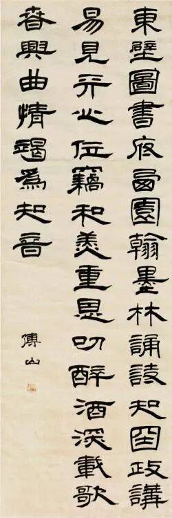 傅山对隶书、篆书的喜爱并运用到艺术性或社交性书写当中,其实质是以东晋为终点,向汉、秦倒推的一种“去方正”的努力,其本质不是反文化,也不是反文明,仍然是追求“奇”和“趣”。
