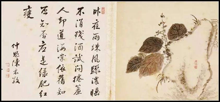 《种芹人曹霑画册》长31.5厘米、宽29.4厘米。全册共纳有设色写意画八幅,每幅画均在左侧附有题诗页。画页与诗页,粘连成帧,八帧粘连,折页成册。画册材质为绢,诗页材质为纸。我们一起来欣赏: