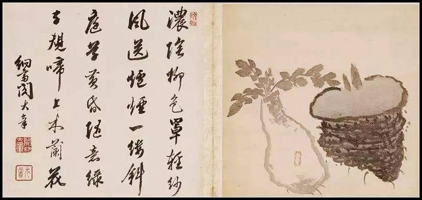 《种芹人曹霑画册》上不仅有曹霑题诗“冷雨寒烟卧碧尘,秋田蔓底摘来新。披图空羡东门味,渴死许多烦热人”,还有八幅勾画芋头、萝卜、茄子、西瓜、海棠、残荷、峭石灵芝、渔翁的着色画。对我们了解曹雪芹的思想、曹雪芹的绘画及书法,以及日常交往等情况提供了重要参考。