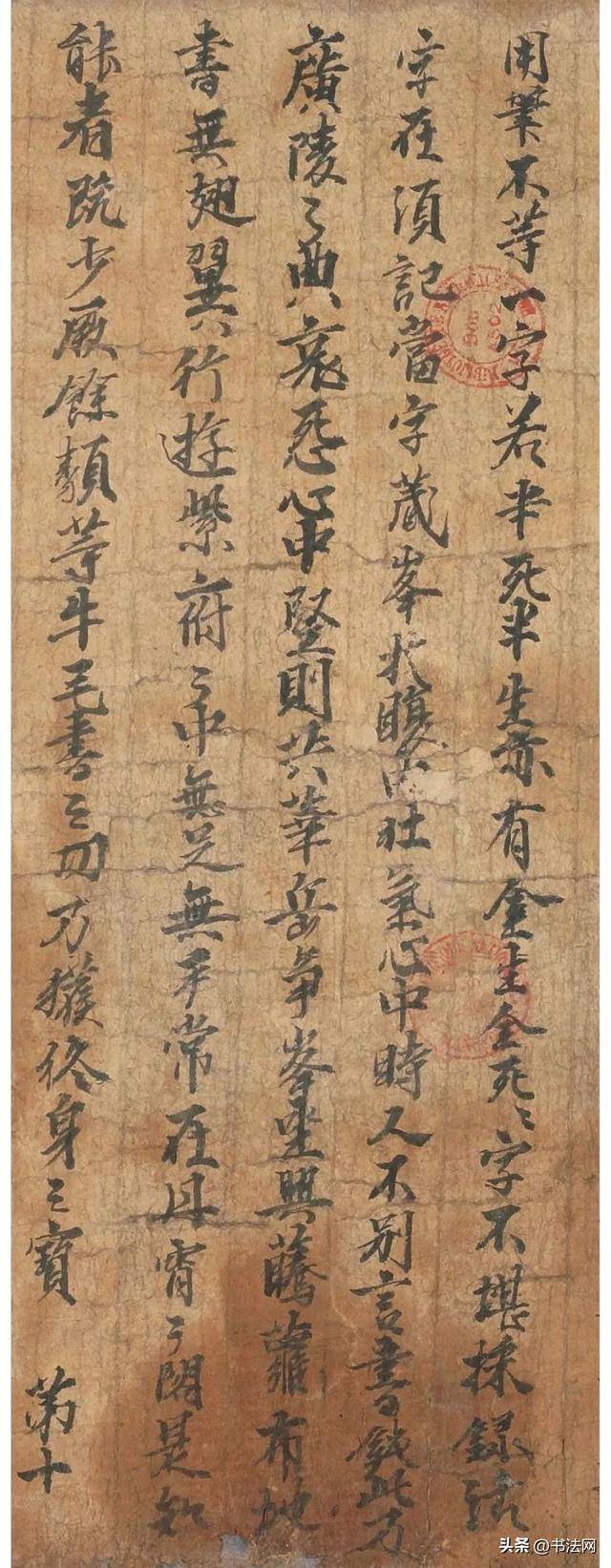 关于究竟是十章,还是十二章,后人争论千年,一直没有结果,直到1900年,敦煌藏经洞问世,才确认是十章,洞内找出一幅王羲之书论罕见手稿,据专家推测,应是唐朝时期,由“宫廷抄经生”所写,字字生动润丽、俊逸绰约,充满着仙气。