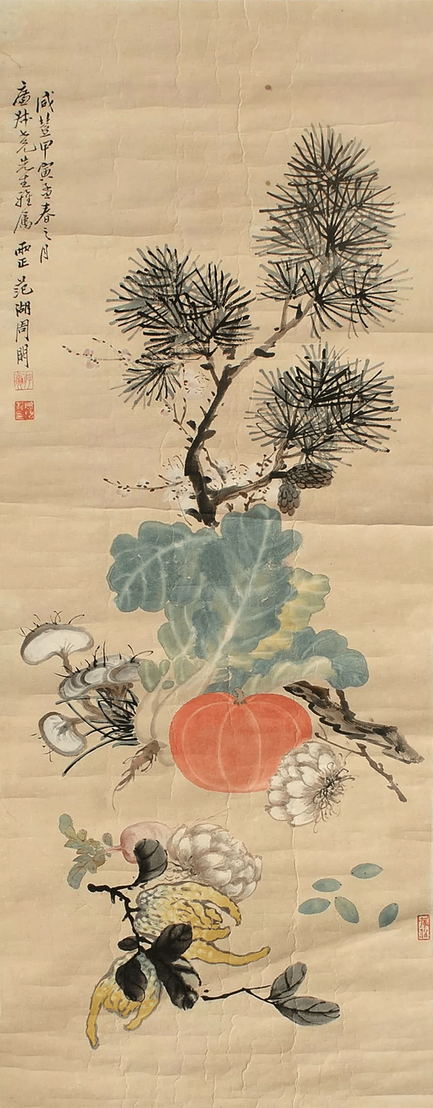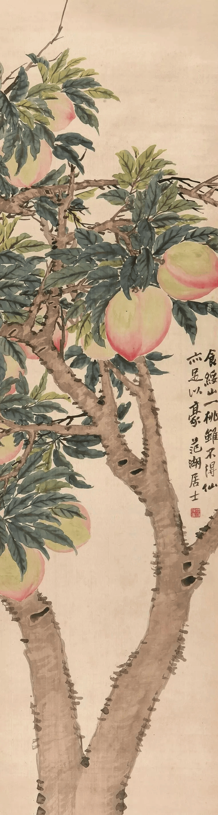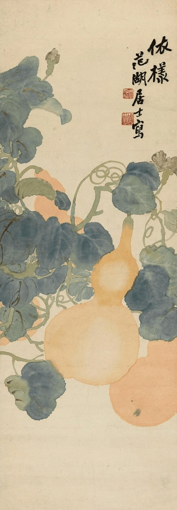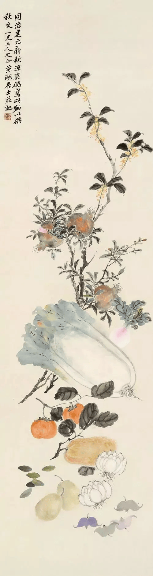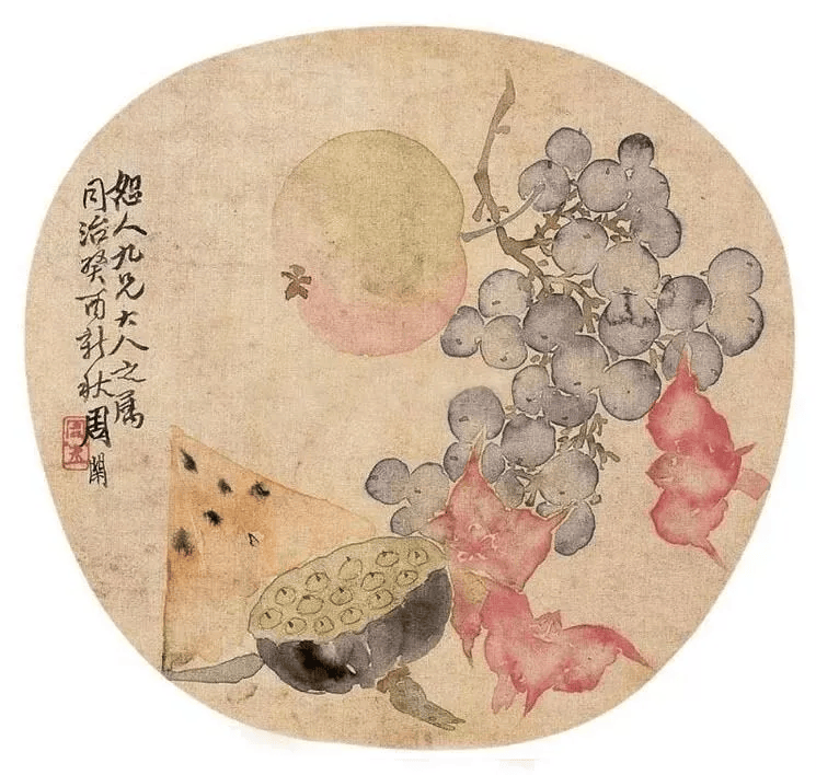在晚清时期,一味追求传移模写与仿古摹古的氛围中,这样的花果图无疑成为一种清新剂,为陈陈相因的画坛带来了革新的气息。