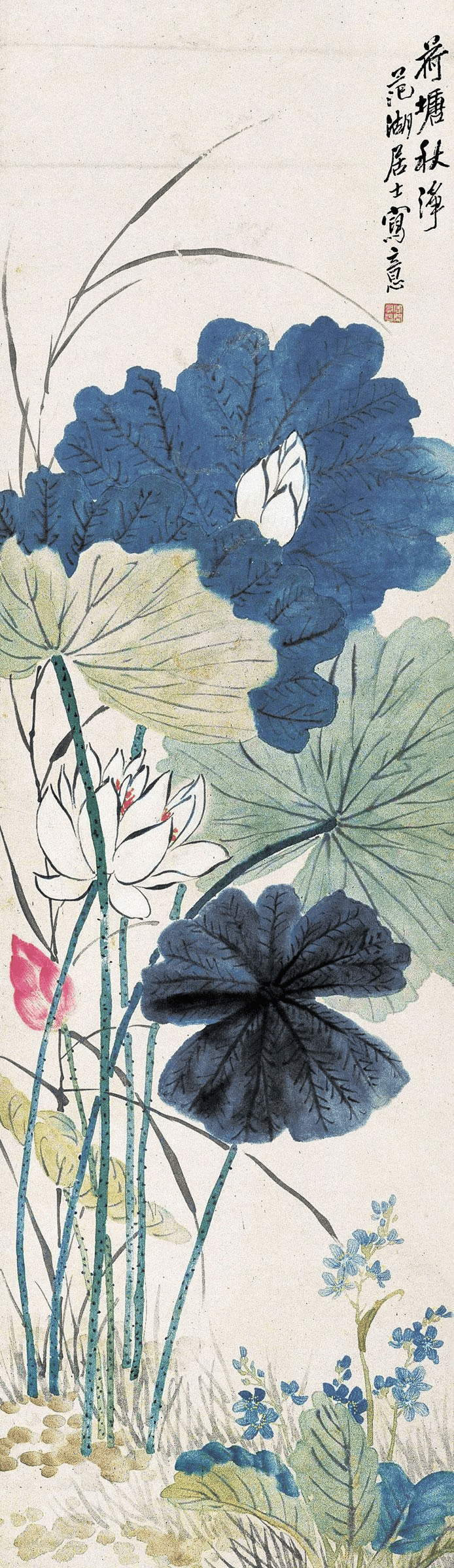 周闲善画花卉,其以没骨画法绘之,肥腴滋润的彩墨缀以精微双钩,他创造性地把极富视觉冲击力的响亮色调附于纸上,很有栩栩如生的鲜活感。